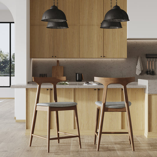 Annett Mid Century Modern Fabric Upholstered Wood 24.5 Inch Counter Stools (Set of 2)