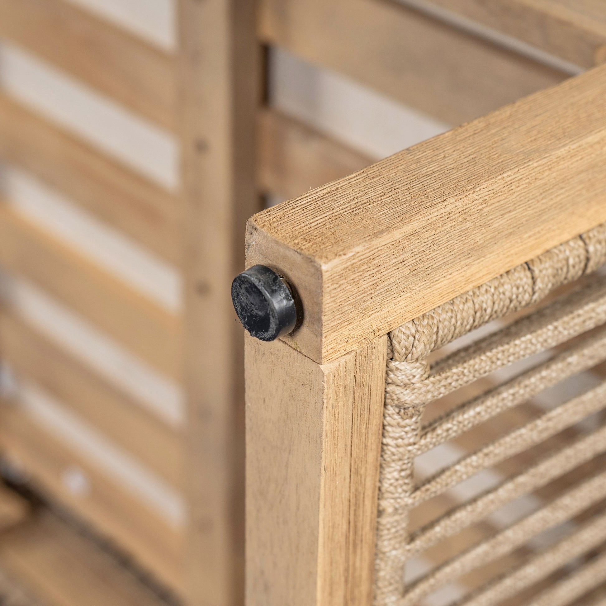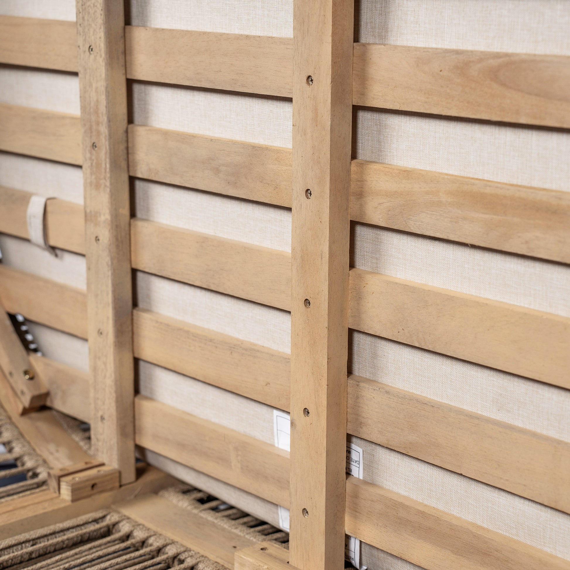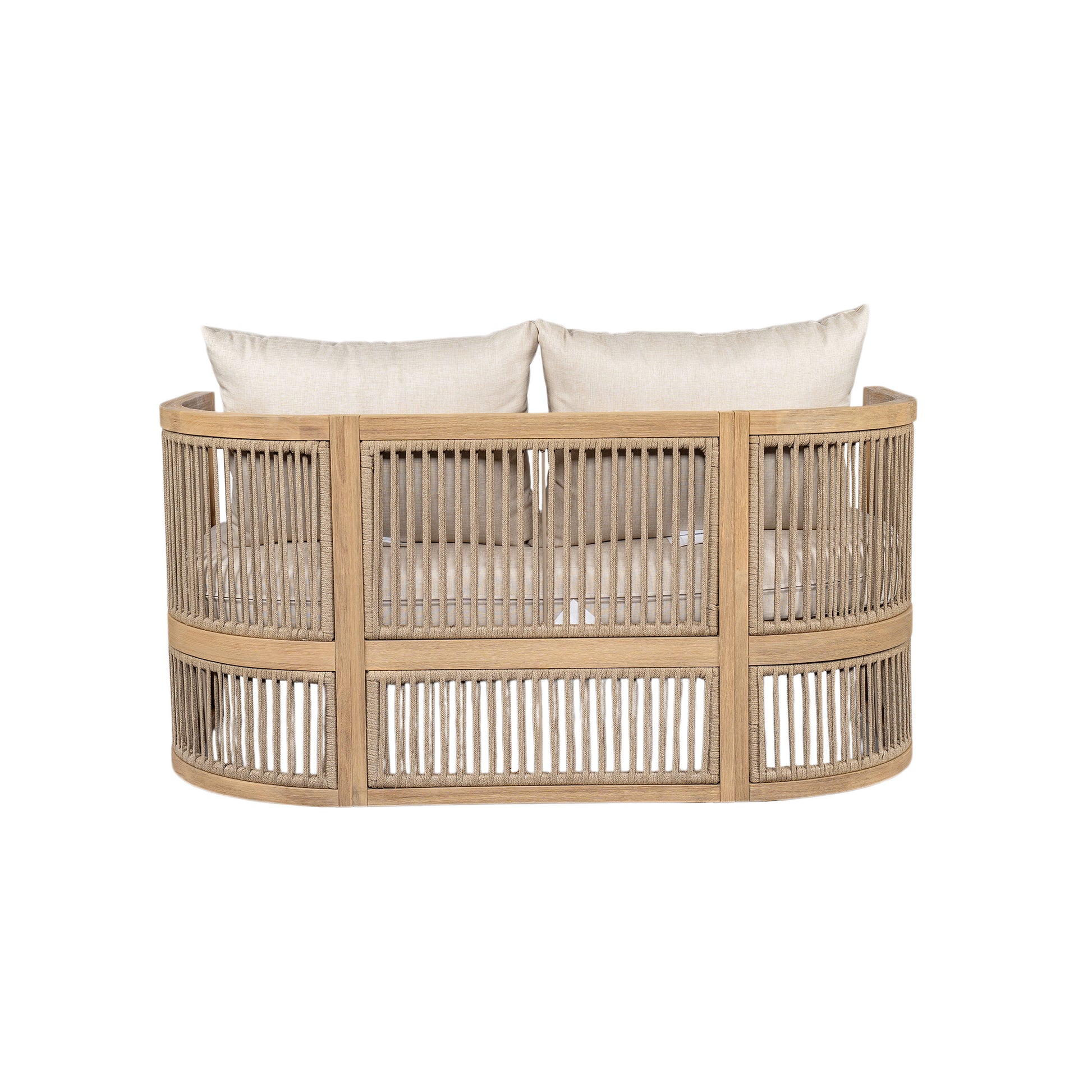 Flaunting a natural frame complemented by beige cushions, the loveseat embody quiet sophistication. Crafted from acacia wood, the loveseat's frame showcases the intricate grain and warm color of this distinctive wood, creating a rustic charm that enhances any outdoor space.