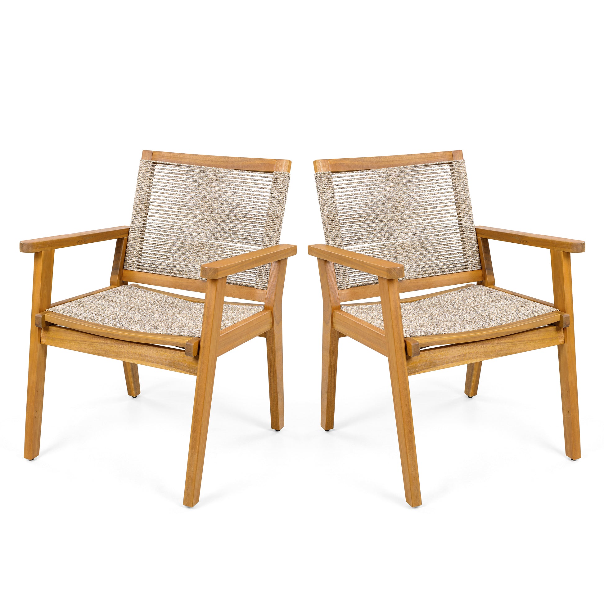 Aelfric Outdoor Dining Chairs Set of 2, Teak Finish Wood Frame and Mix Brown Rope, Natural Courtyard Style, 400lbs Capacity