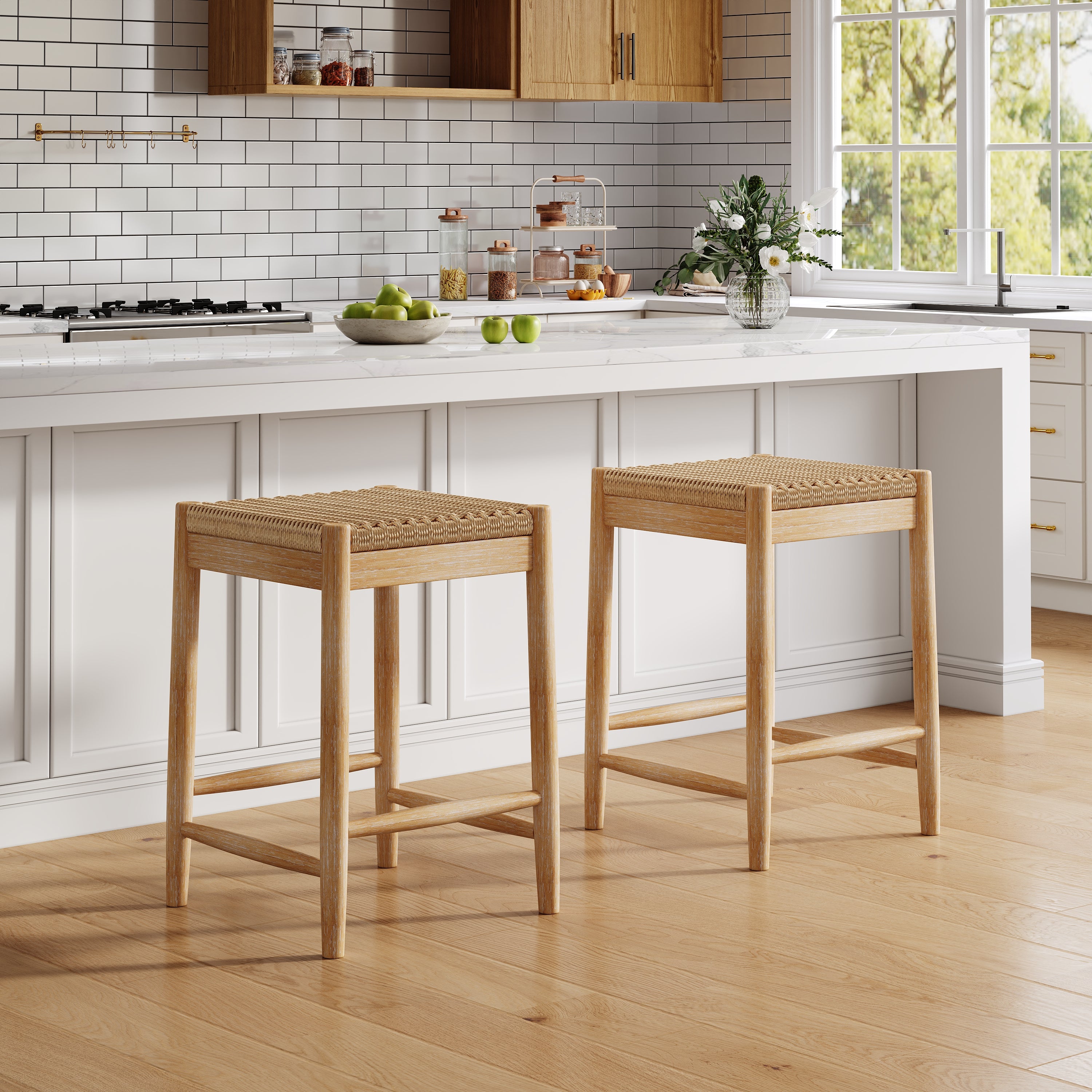 Alistair Solid Wood Stools,25.8" Tall Boho Backless Stool Chairs with Acacia Wood Legs, Max Load 220 Lbs