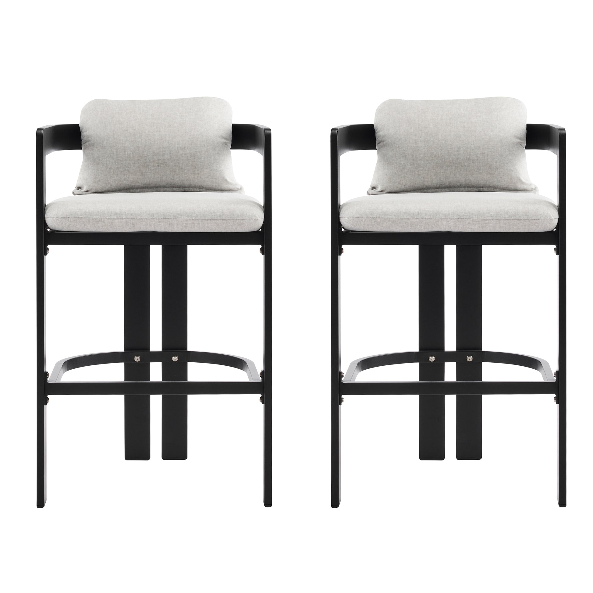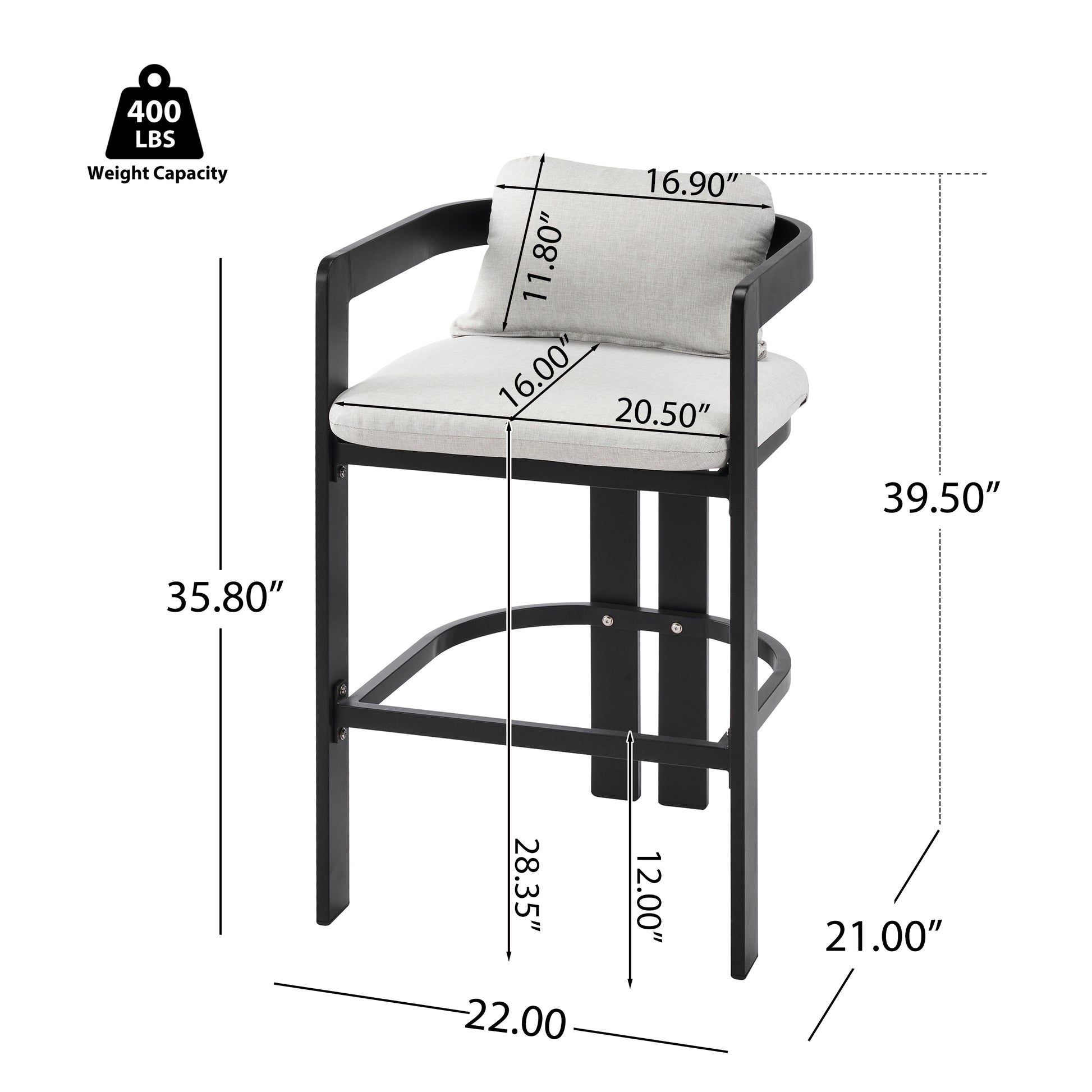 Amice Black Aluminum Outdoor Counter Stools – Sleek Modern Frame with Weather-Resistant Grey Cushions for Stylish Patio Bar Seating, Set of 2