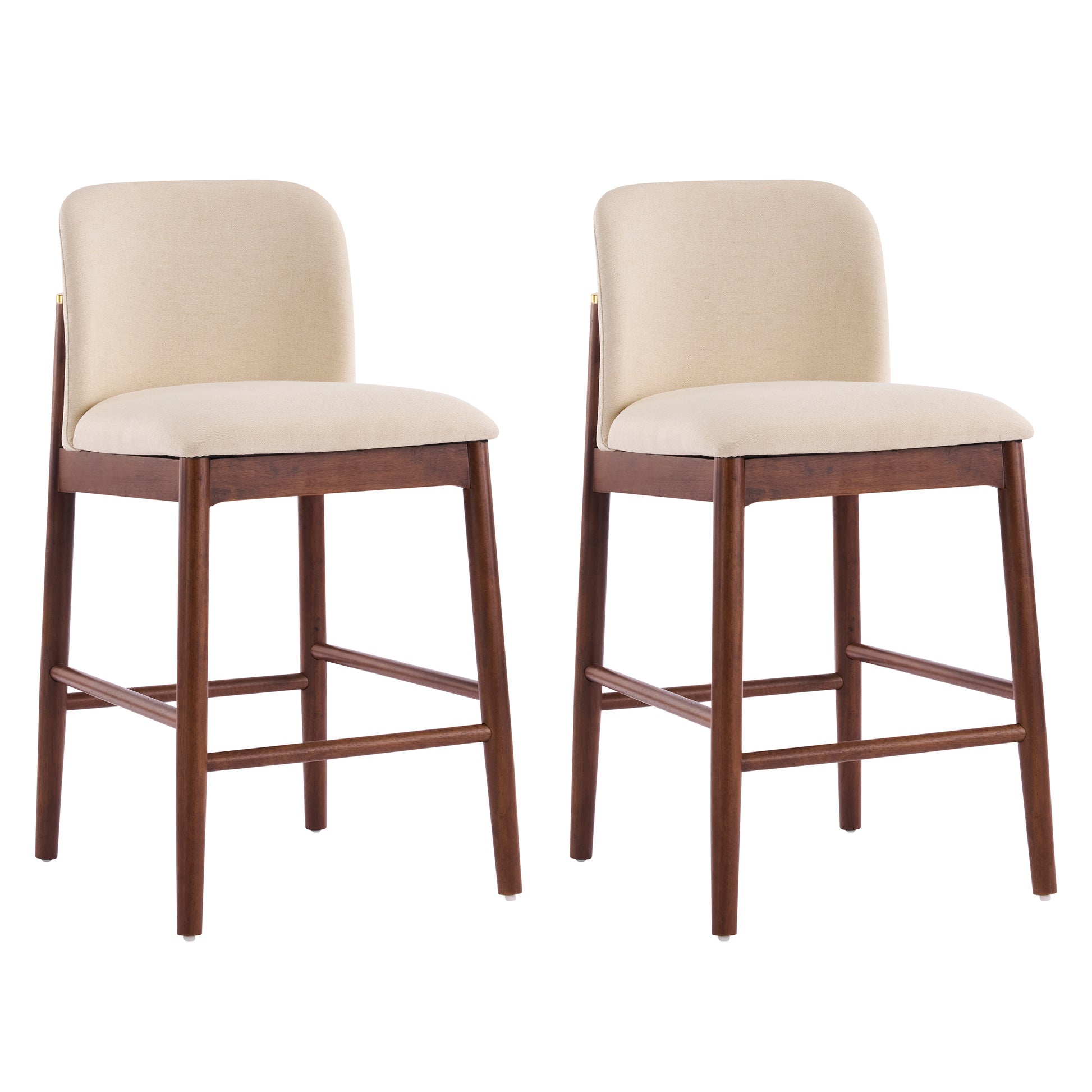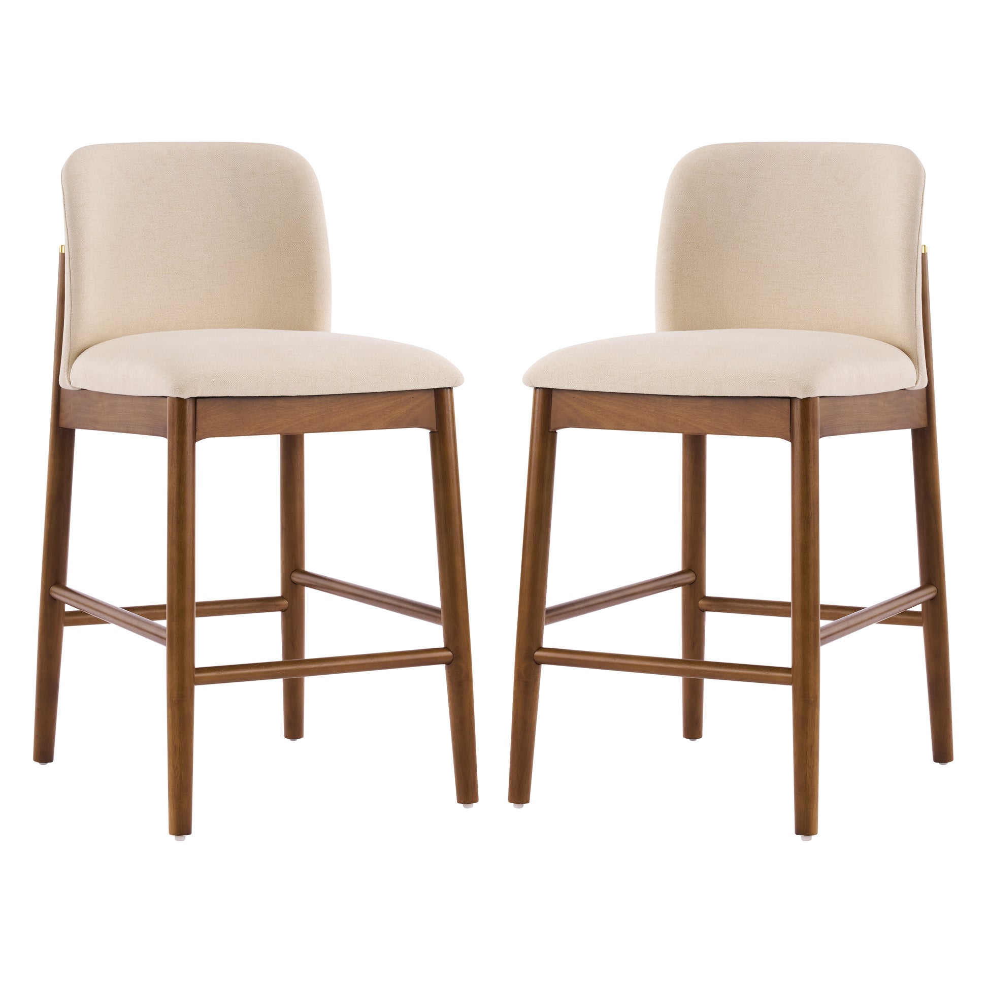 Araminta Upholstered Indoor Counter Stools – Luxurious Timeless Frame with Soft Beige Seats for Refined Kitchen Bar Elegance, Set of 2