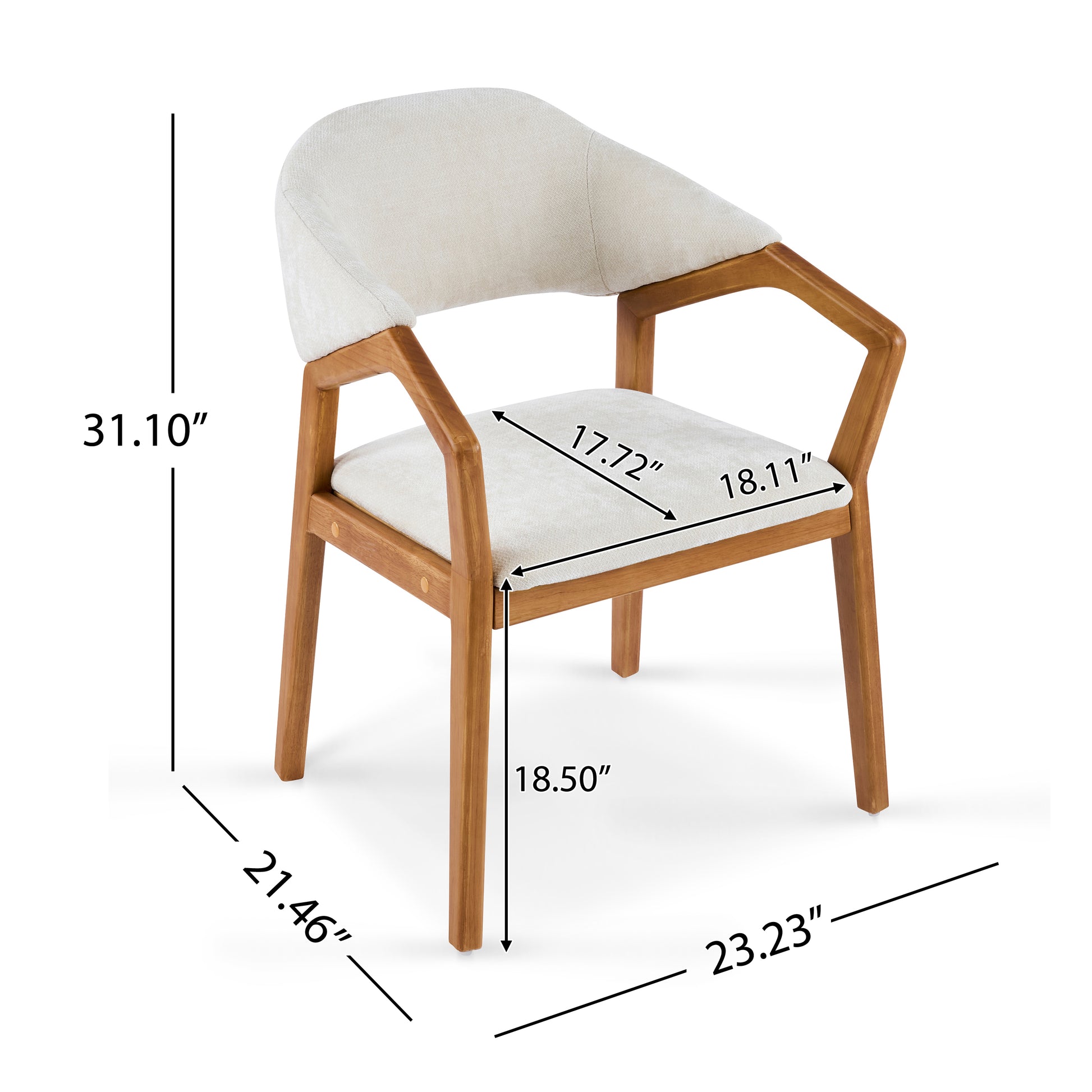Arden Indoor Dining Chair Set of 2, Chenille Upholstered Armchairs with Bent Wood Frame, 300lbs Capacity, Ergonomic Curved Backrest