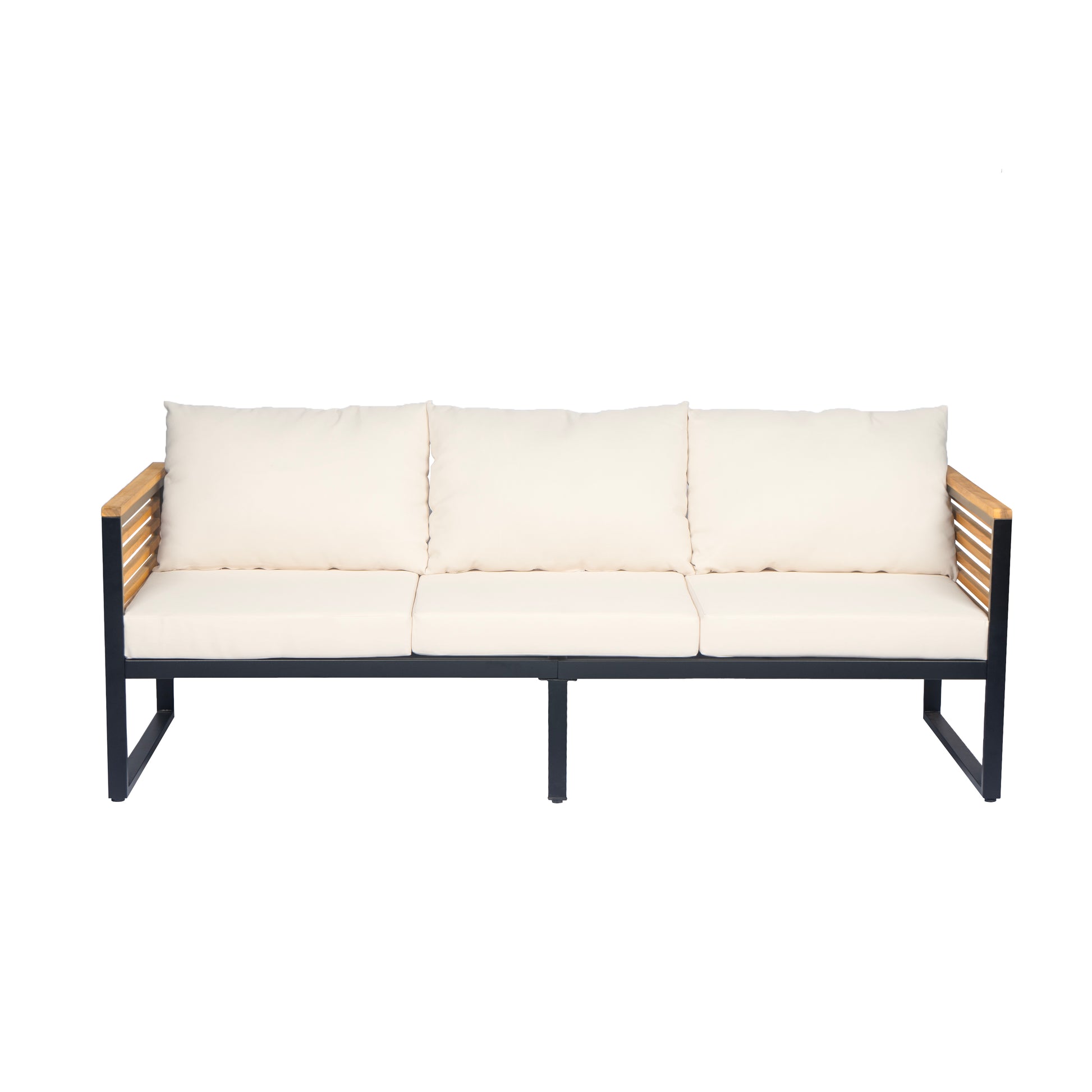 - Sturdy Construction: Crafted with durable iron pipes and solid acacia wood, this outdoor sofa offers a robust design that ensures longevity and stability, making it ideal for outdoor use.