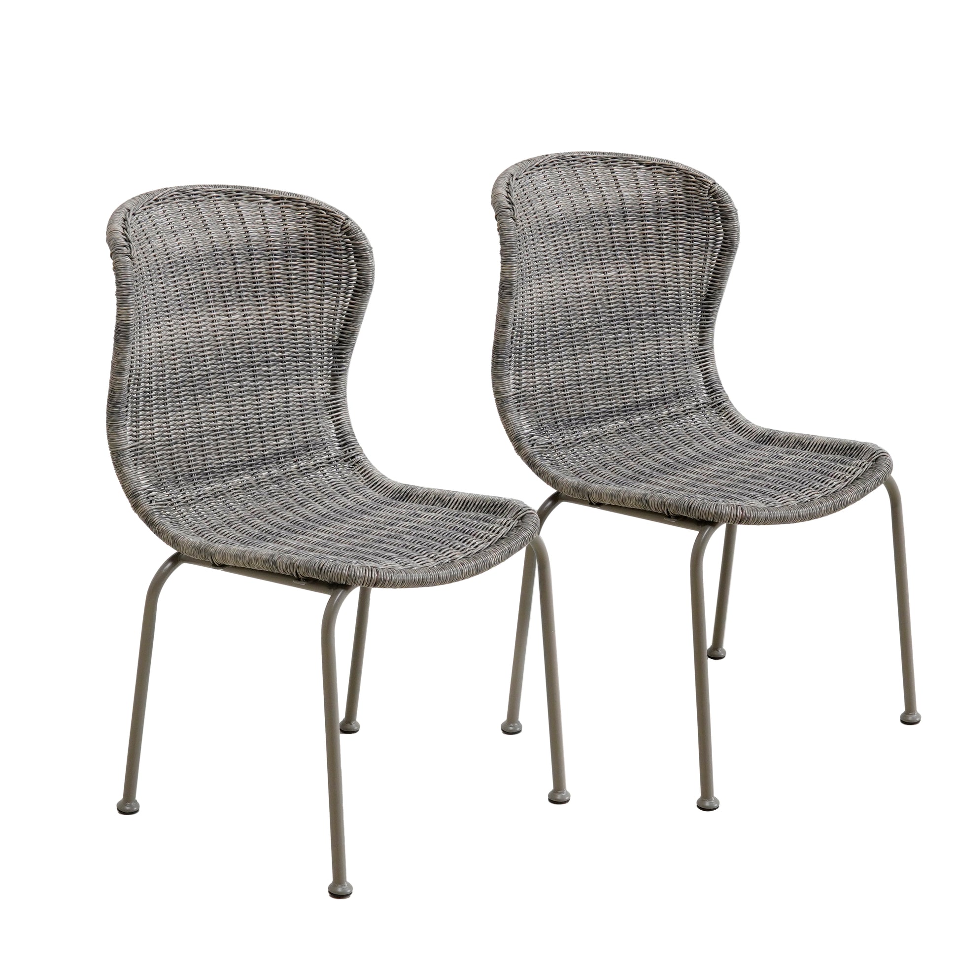 Boho Outdoor Wicker Dining Chair Curved Scroll Back,Set of 2