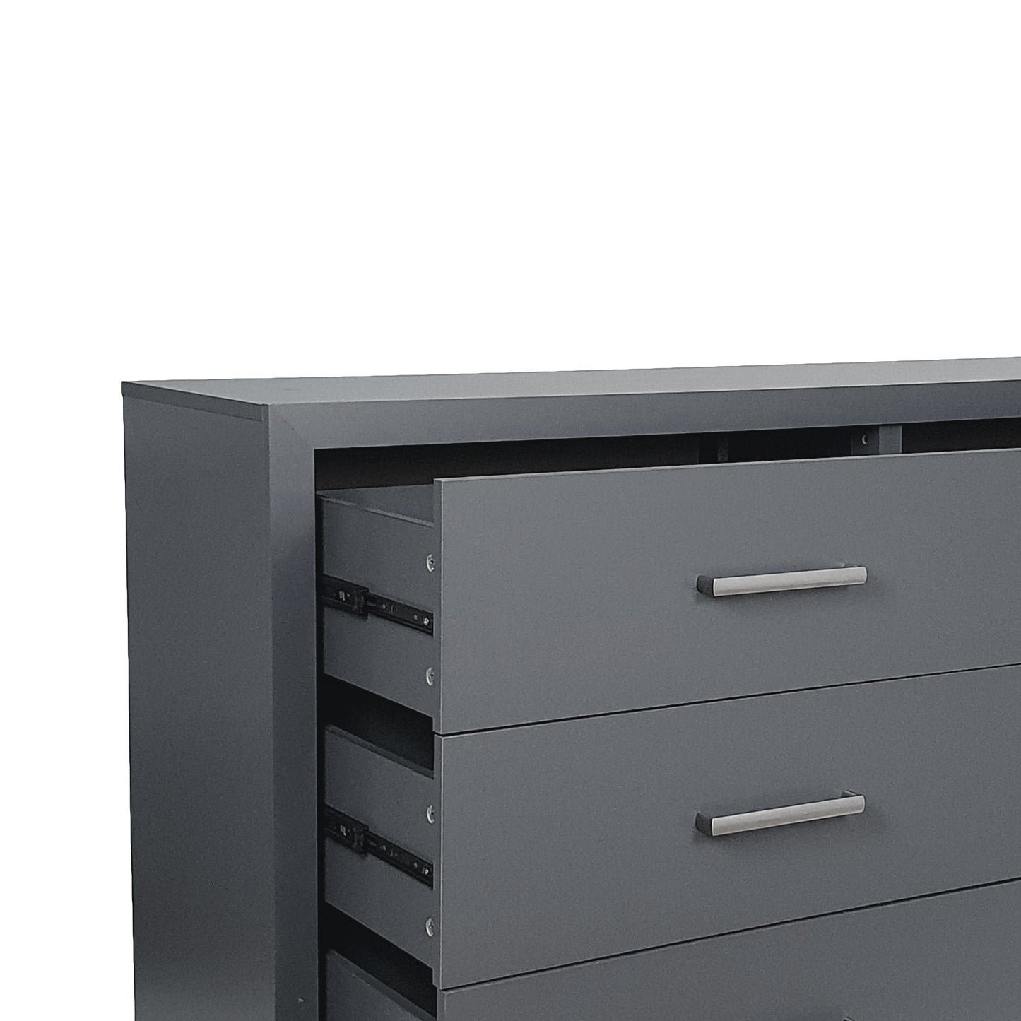 Take the guesswork out of interior design with this smart, well-coordinated nightstand and dresser set. Your bedroom will be instantly modernized with this straightforward, yet breathtaking collection. A three-drawer nightstand and a matching six-drawer double dresser ensure that your space will always remain organized and clutter-free. Durable, open iron bases and clean lines make these contemporary pieces even more stylish. Pair them with...
