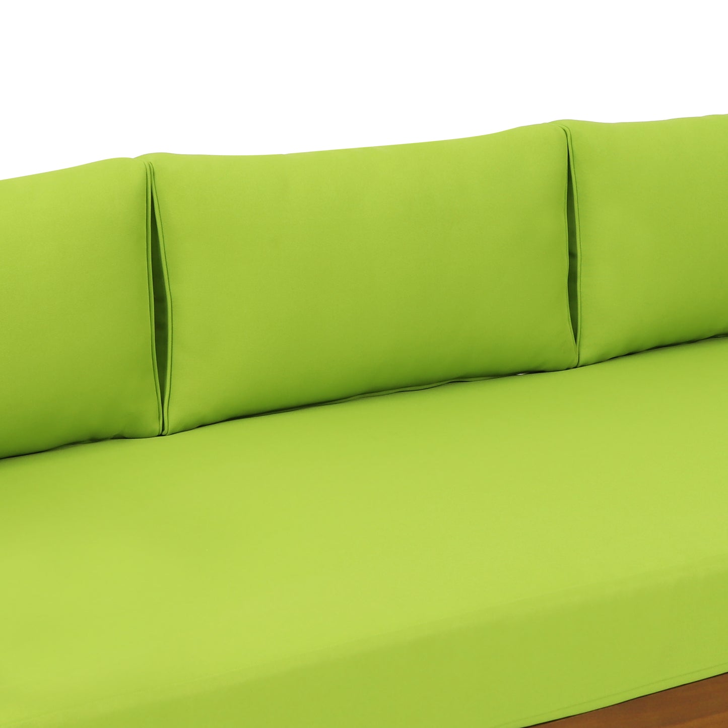 Made from sturdy acacia wood with impressive water-resistant cushions, this cozy, outdoor daybed uplifts the way you lounge in your own backyard or patio space. This piece is multi-functional, allowing you to use this as a snug sofa or a spacious daybed, meeting all your leisurely needs. The rich wood finish and slat paneling perfectly complement your backyard greenery and add much-needed style to your outdoor decor.