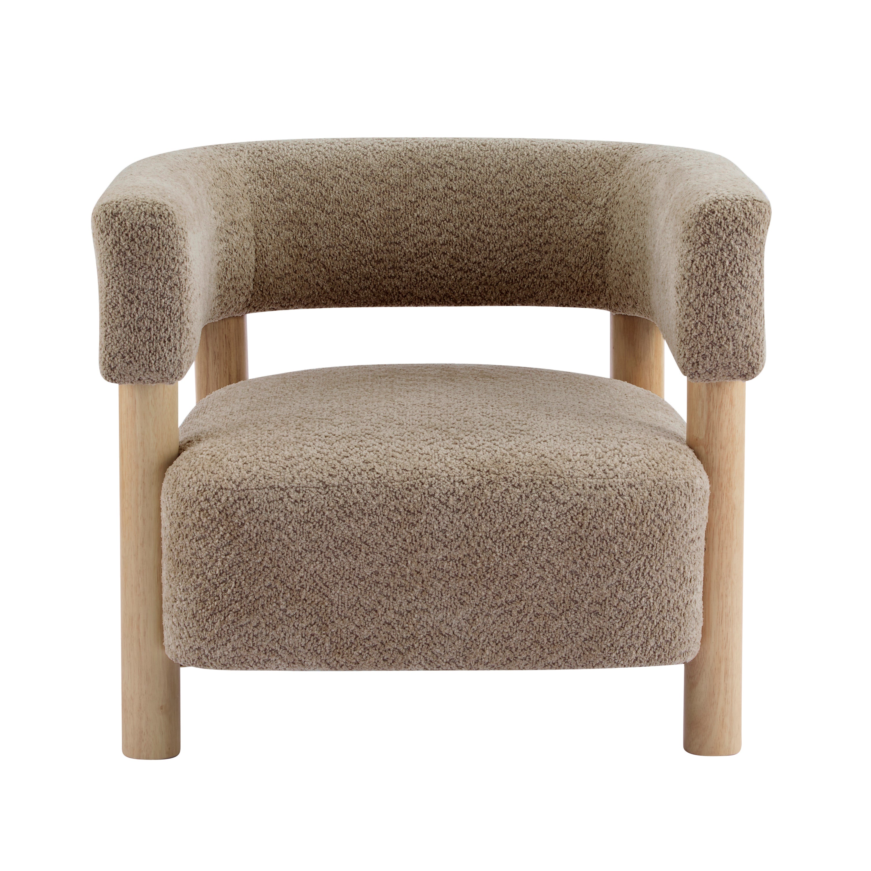 The boucle Accent Chair boasts a sturdy rubber wood frame and comfortable foam cushions, wrapped in a stylish and soft cover fabric. The rubber wood legs add a touch of natural charm. Perfect for any room in need of both aesthetics and comfort.