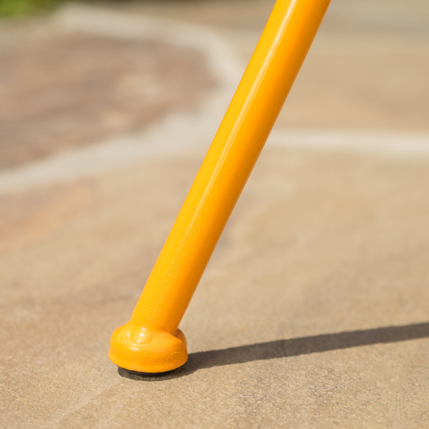 This end table is a great way to add a splash of sunlight to your patio. With yellow accents on the tile and a yellow orange powder coating on the iron frame, this table is its own ray of sunshine. Featuring bright flower based tile designs, this wonderful accent table is sure to brighten your day.