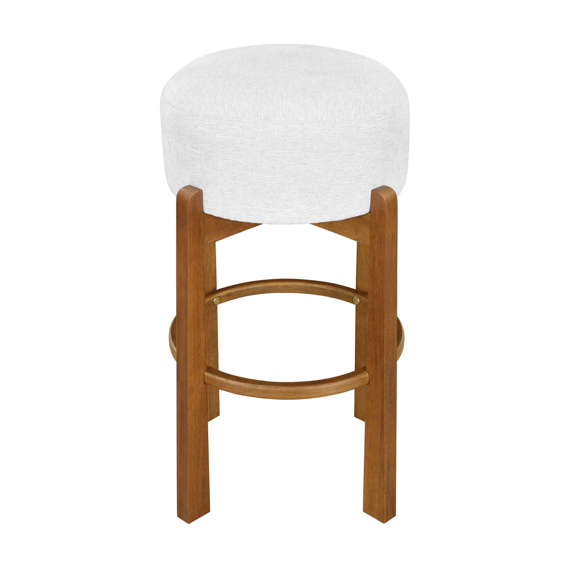 - Discover the perfect blend of style, comfort, and durability with our indoor bar stool. Featuring a sturdy rubberwood frame in a rich dark walnut finish and a soft ivory upholstered seat, this stool is designed to elevate any space—from modern kitchens to cozy home bars.