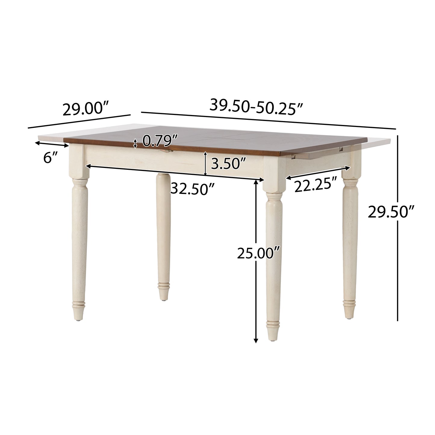 Broughton Rustic Wood Dining Table with Extendable Leaf, Dark Oak and Antique White