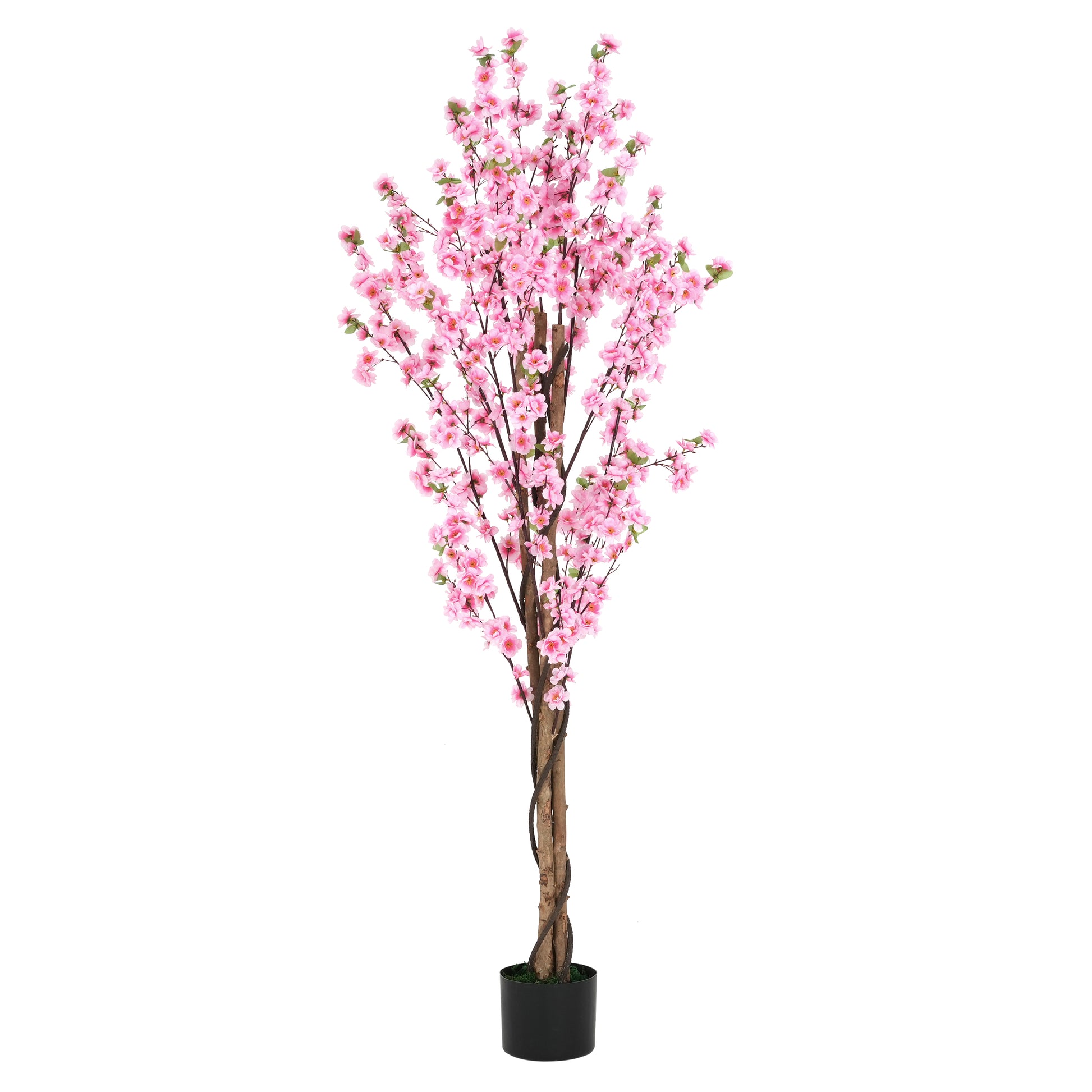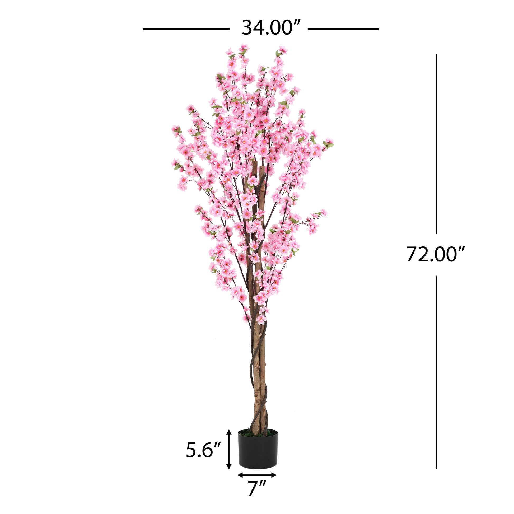Brynden 6' Artificial Peach Blossom Tree with Black Plastic Pot