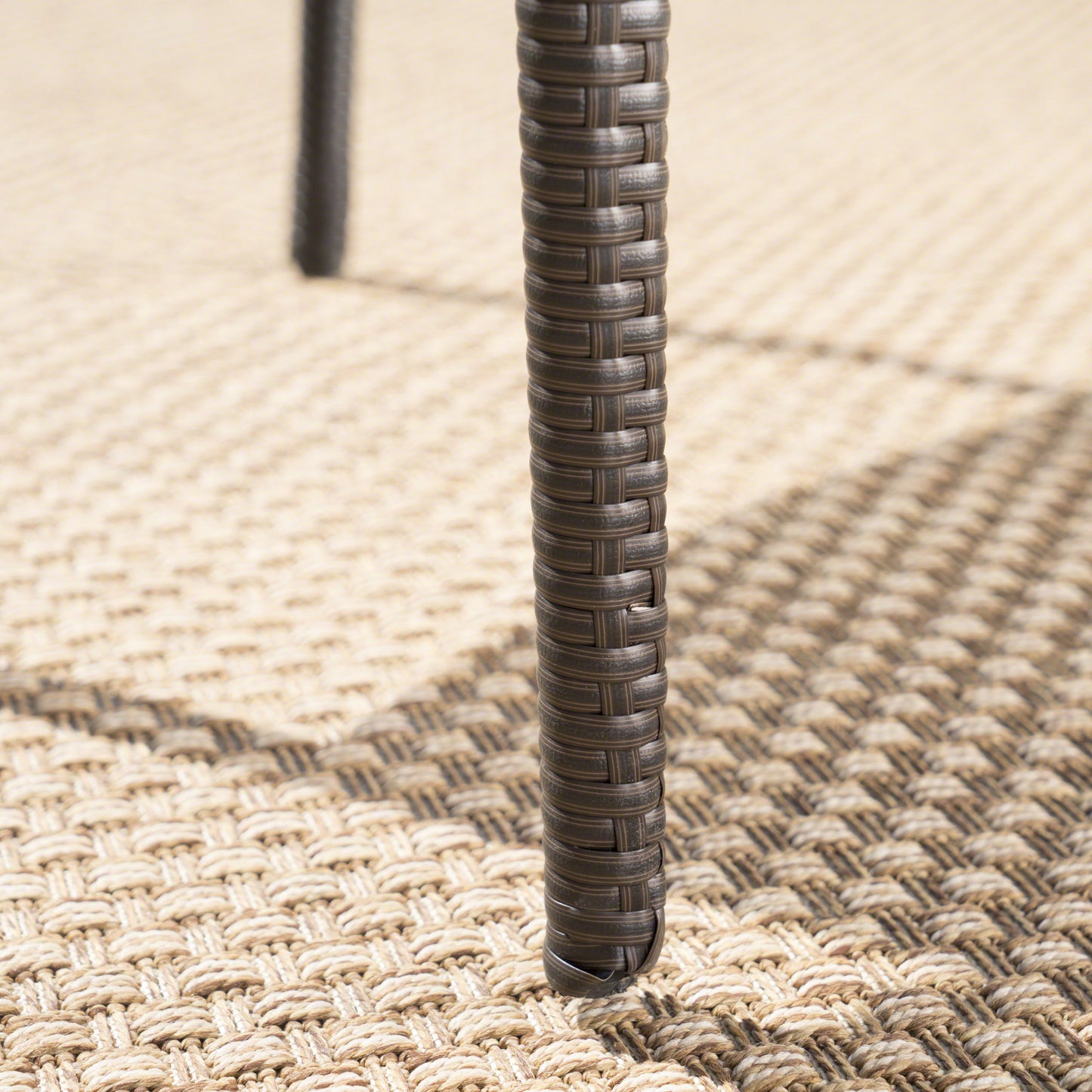 Cassandra Outdoor 6 Piece Brown Aluminum Dining Set with Bench and Wicker Chairs