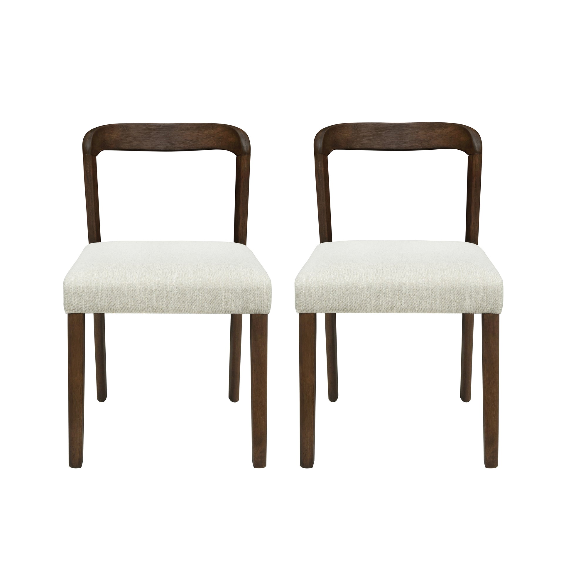Ready for dinner or dessert, our 2-piece set of side chairs gives you and a friend a spot to sit and enjoy some catch-up time. Clean lines and rounded backrest curves give a stylish look that perfectly matches the modern and minimalist aesthetic. The sturdy oak frame is durable and easy to maintain, while the muted interior seats give you all the comfort for your dining experience.