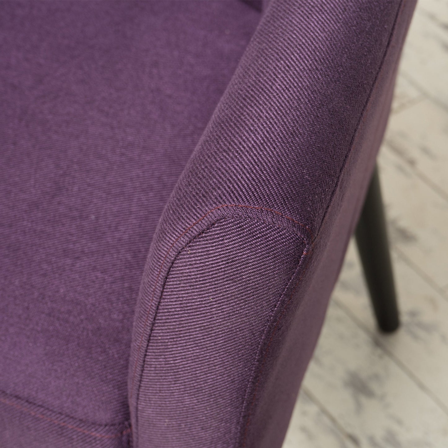 This arm chair is great for any office or living room. The low back and high arms allow you to relax in comfort and style. The wooden legs ensure that this chair will remain both sturdy and classy during all the years of use. The cushioned seat adds to the overall appeal of the chair, giving you both comfort and class in your furniture, adding that little extra something to whatever room you place this chair.
