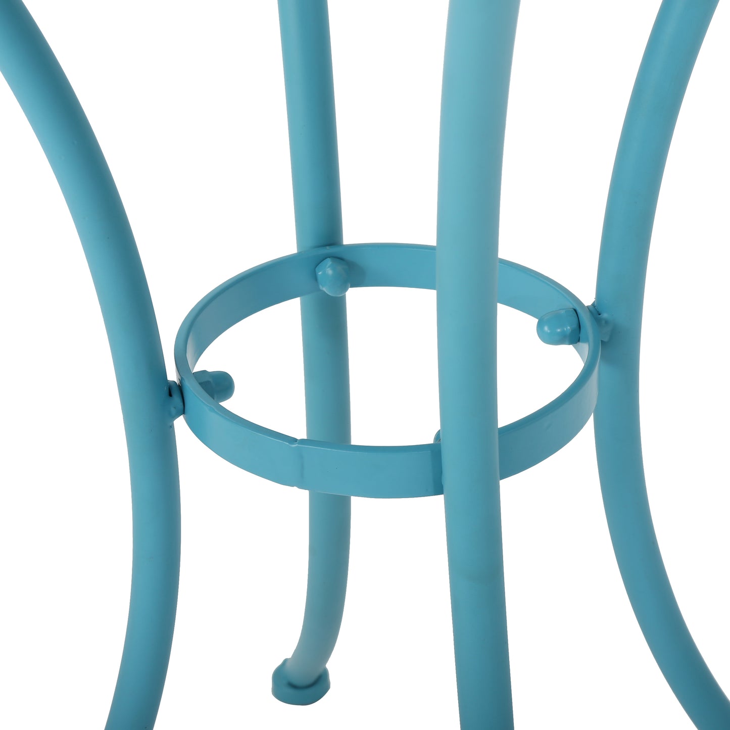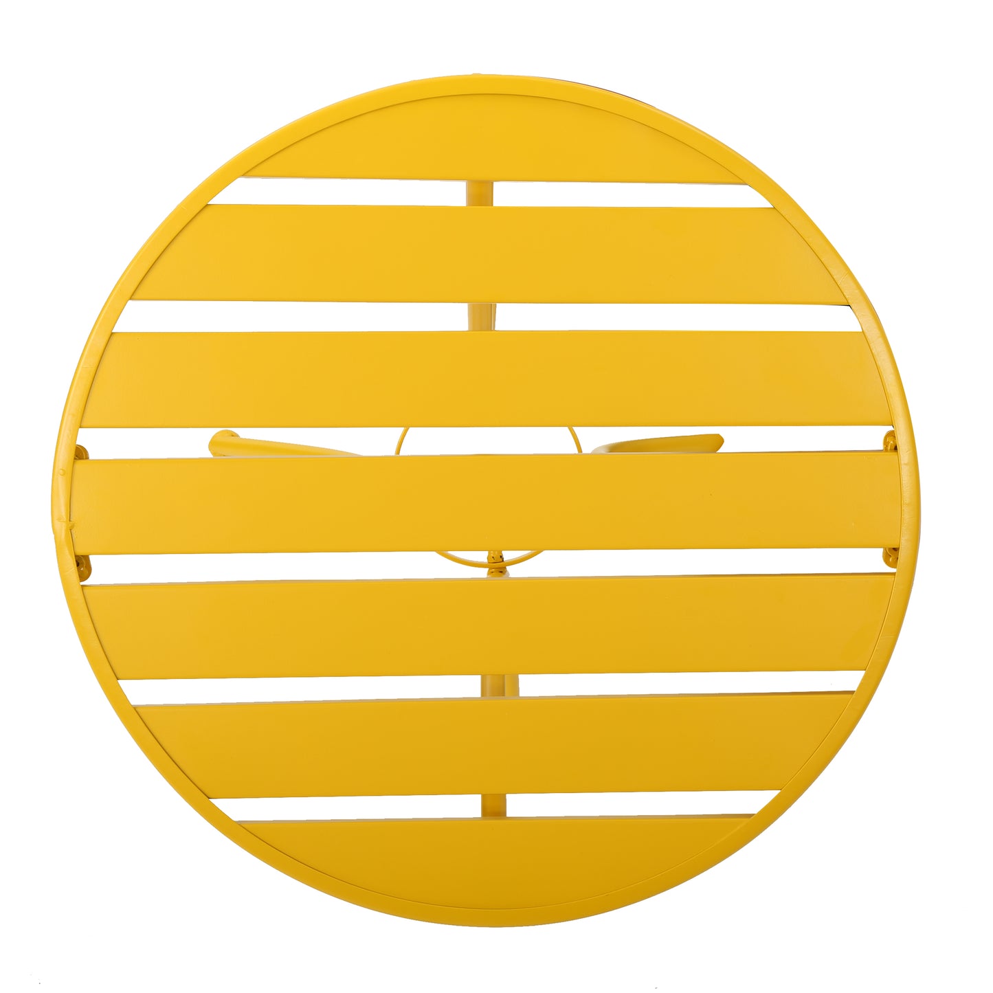 Cheerful and lighthearted in its whimsical styling, this metal bistro set will entice any passerby to pause for a while and just be.