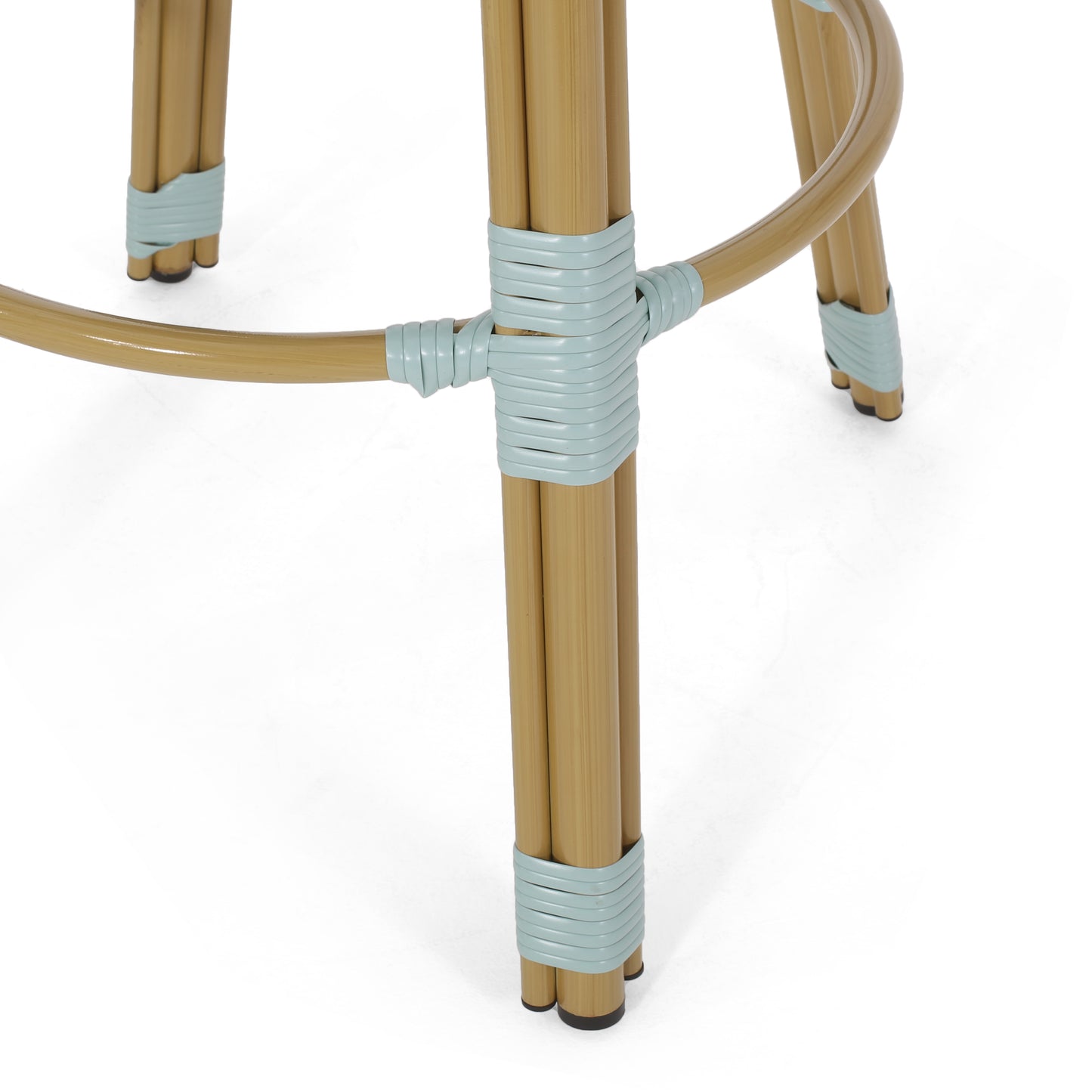 Raise your glass and enjoy the great outdoors to the fullest with the help of some stylish and comfortable seating. Composed of smooth bamboo-finished aluminum frames, stunning wicker weave seating, and charming circular footrails, this set of four eye-catching French-inspired stools will complement any outdoor bar or dining set up, bringing a subtly upscale flair to even the most unassuming home. Each barstool is crafted with precise durab...