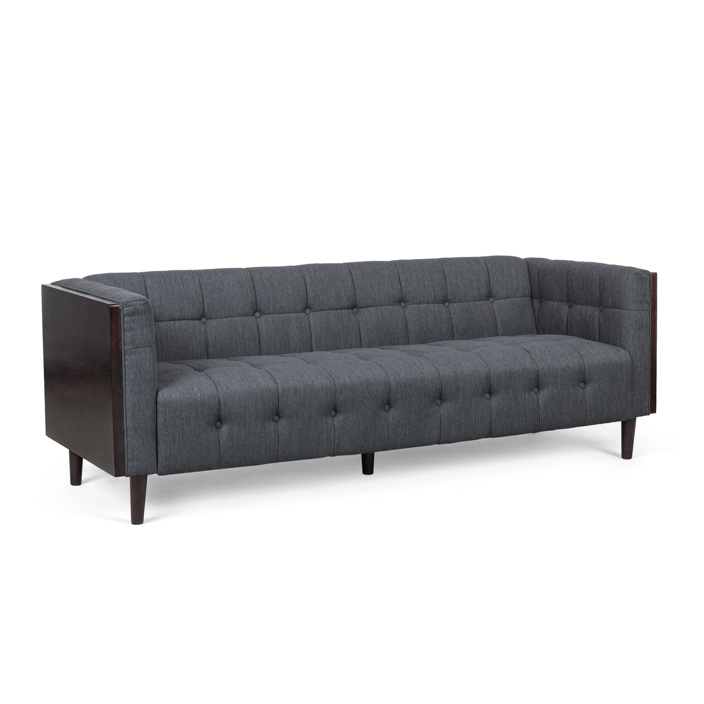Treat your home to a sophisticated style that is sure to upgrade your home in an instant. Perfectly balancing smooth upholstery with a sturdy wood frame, this impressive three-seater sofa offers your home a charming contemporary upgrade with a touch of mid-century charm. This piece offers beautiful button-tufted waffle stitching, making this a streamlined statement piece that can change the whole flow of your living room. Completed with sle...