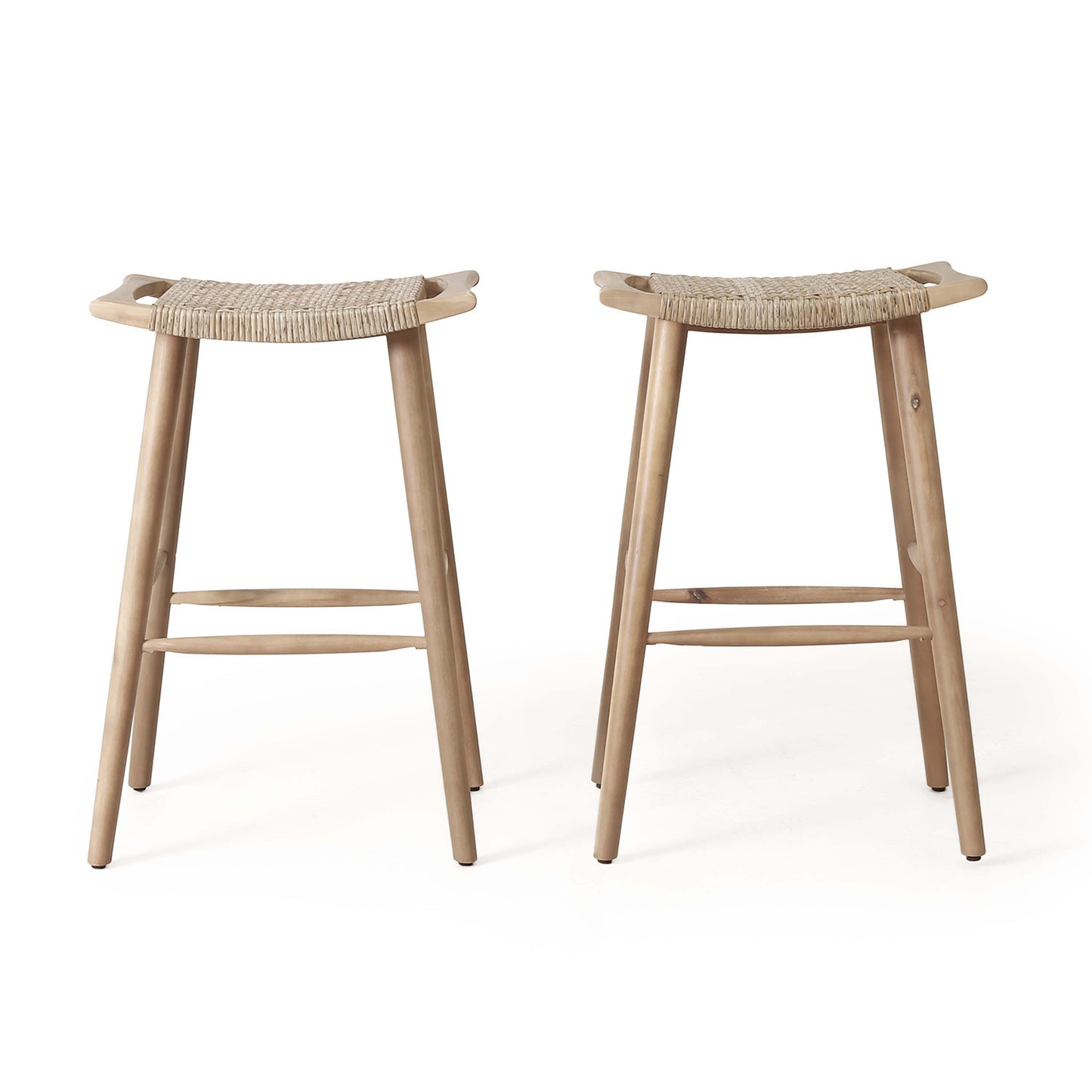 Dade Pulaski Outdoor Acacia Wood Barstool with Wicker, Set of 2