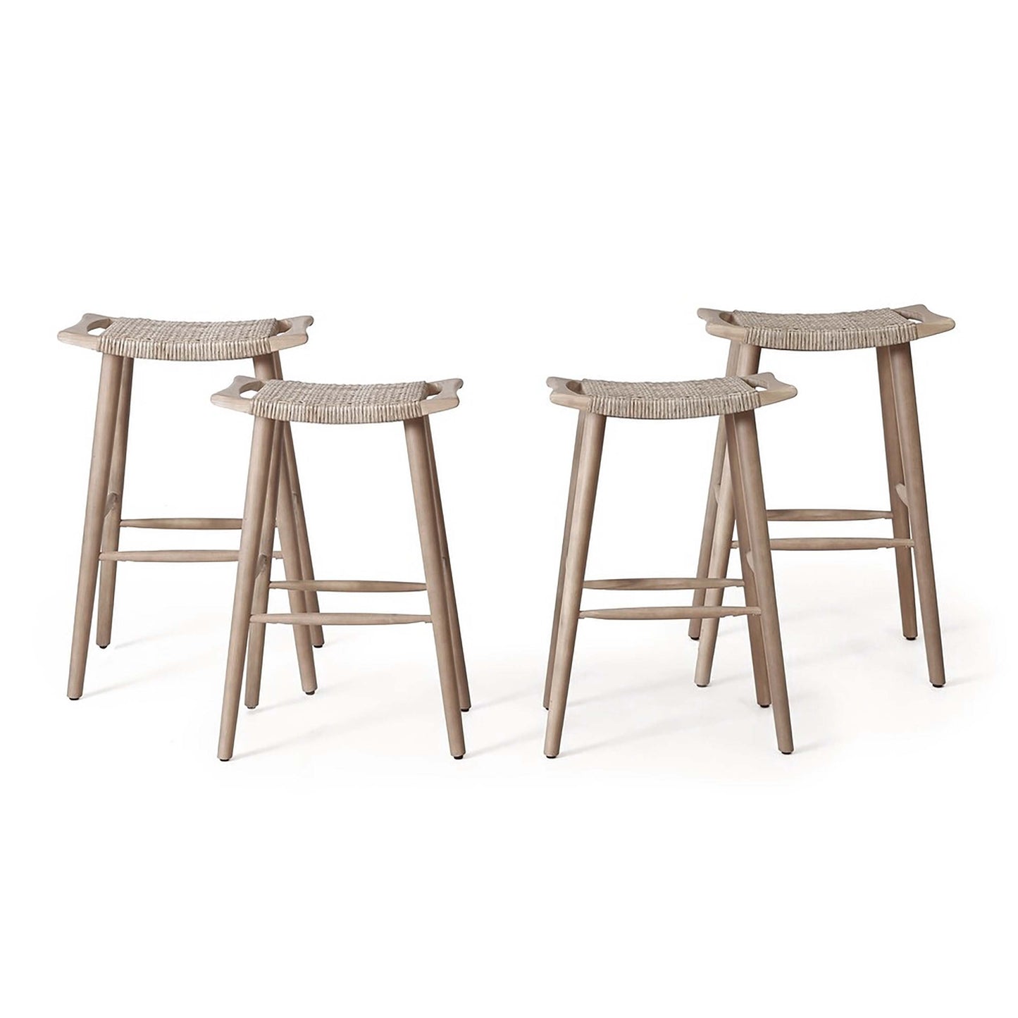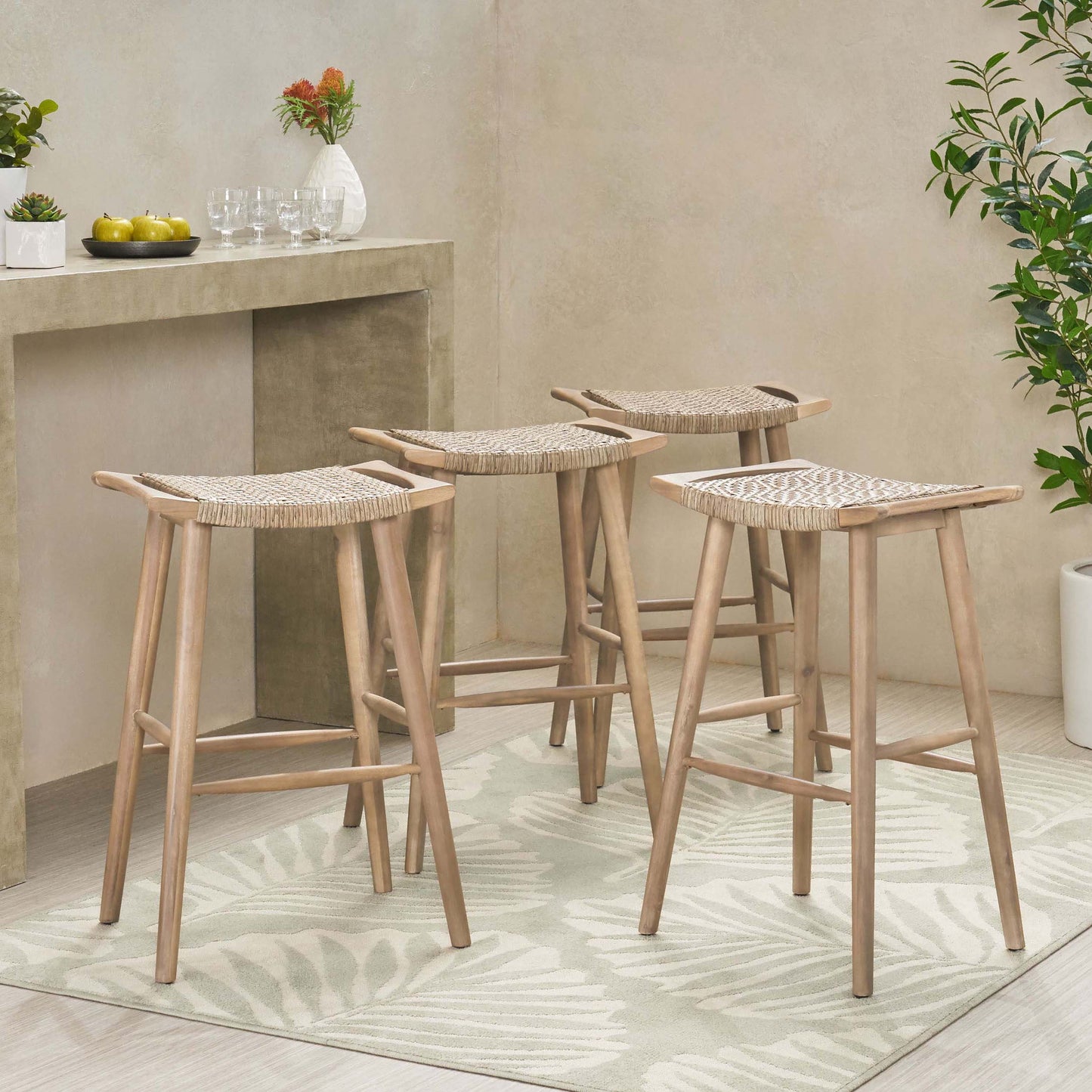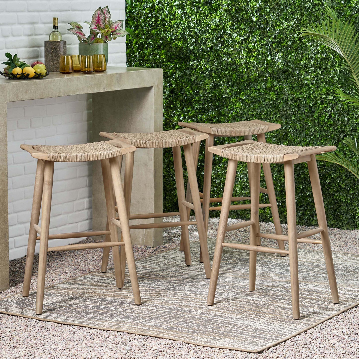 Dade Pulaski Outdoor Acacia Wood Barstool with Wicker, Set of 4
