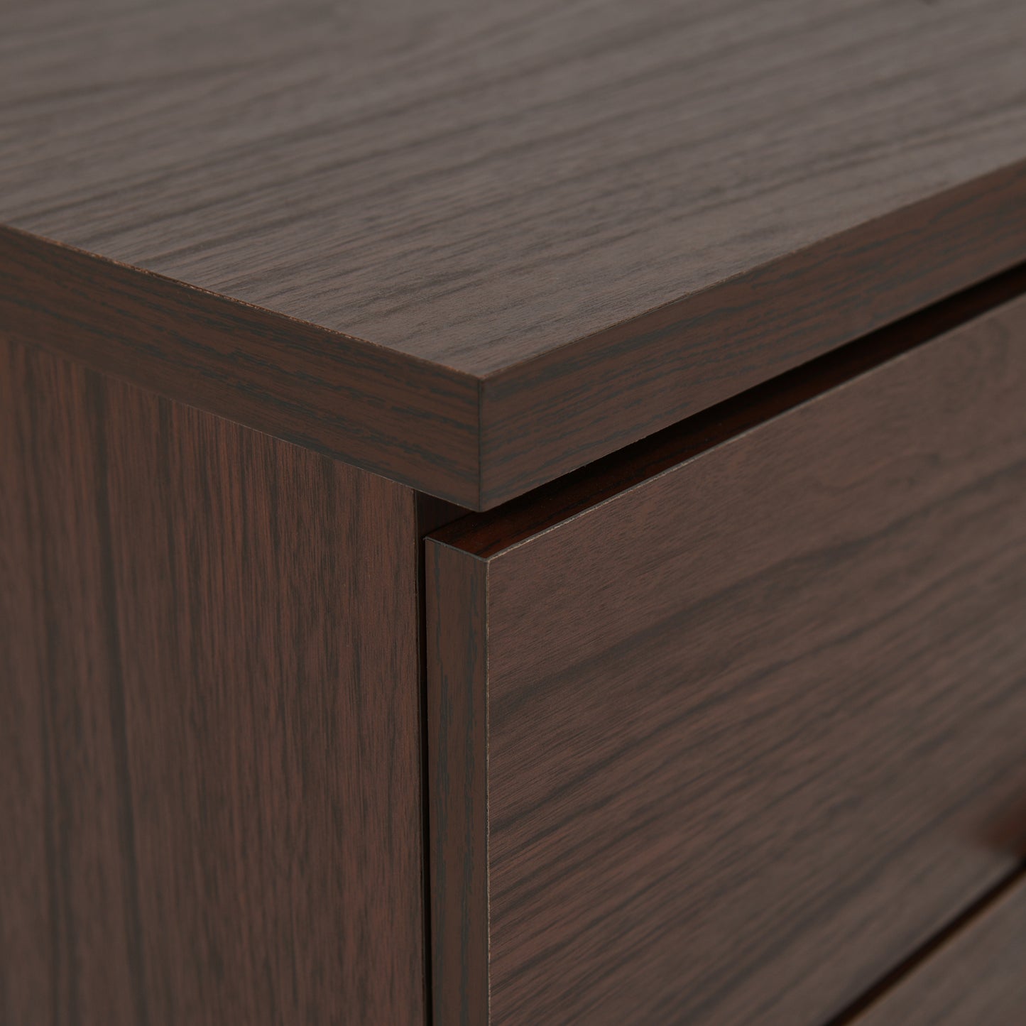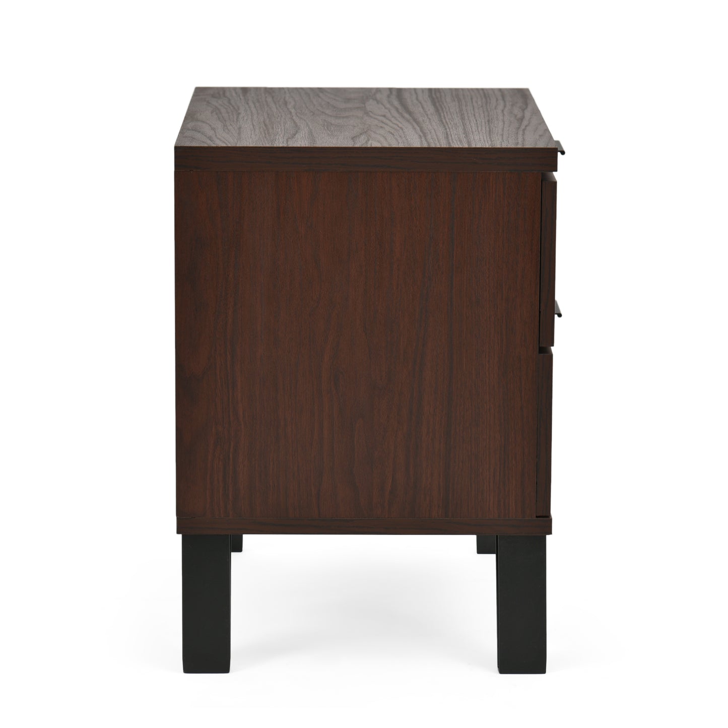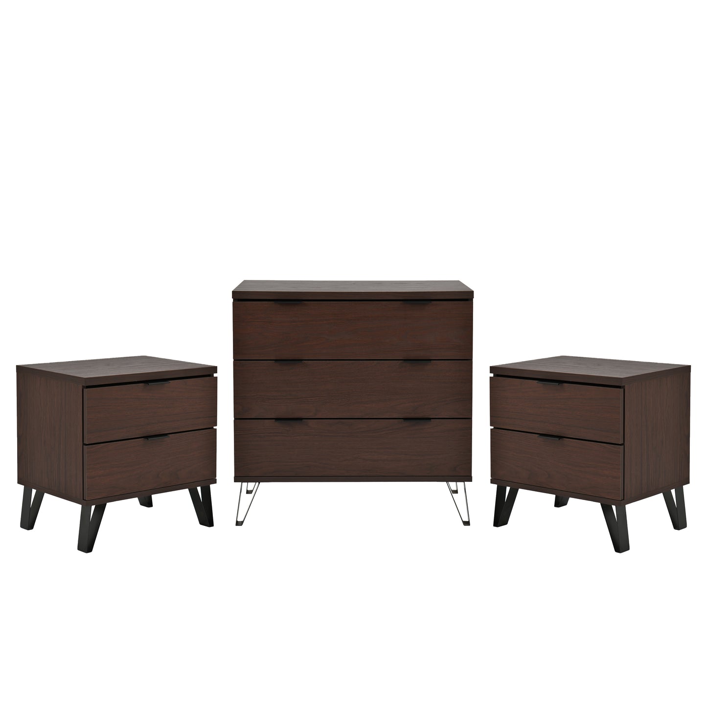 Demijen Modern Industrial 3 Piece 3 Drawer Dresser and Nightstand Bedroom Set, Walnut and Matte Black