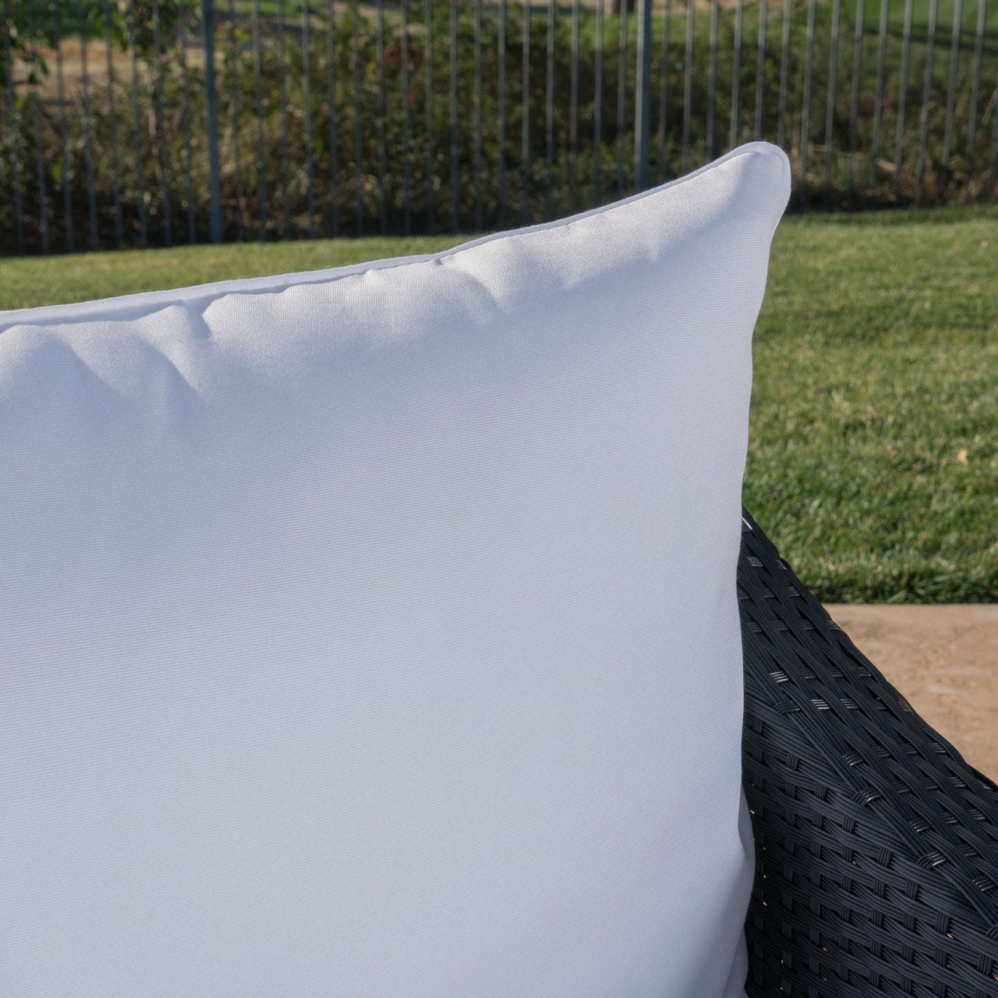 Dione Outdoor Black Wicker Club Chairs with White Water Resistant Cushions
