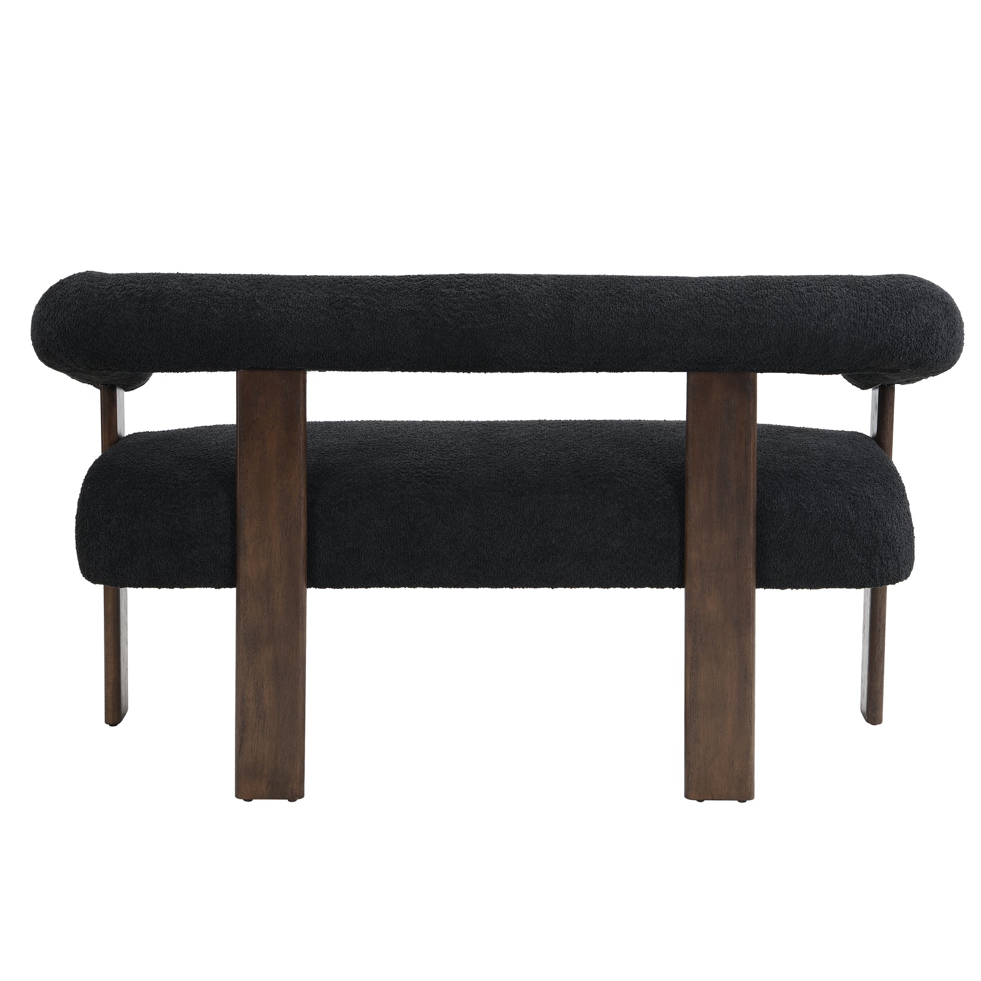 Bring modern charm to your space with this upholstered loveseat. Featuring luxurious dark green fabric and a sturdy rubberwood frame with a warm brown finish, it offers a perfect balance of comfort and style. Compact yet inviting, it's an excellent choice for living rooms, offices, or cozy nooks, blending effortlessly with contemporary or classic decor.