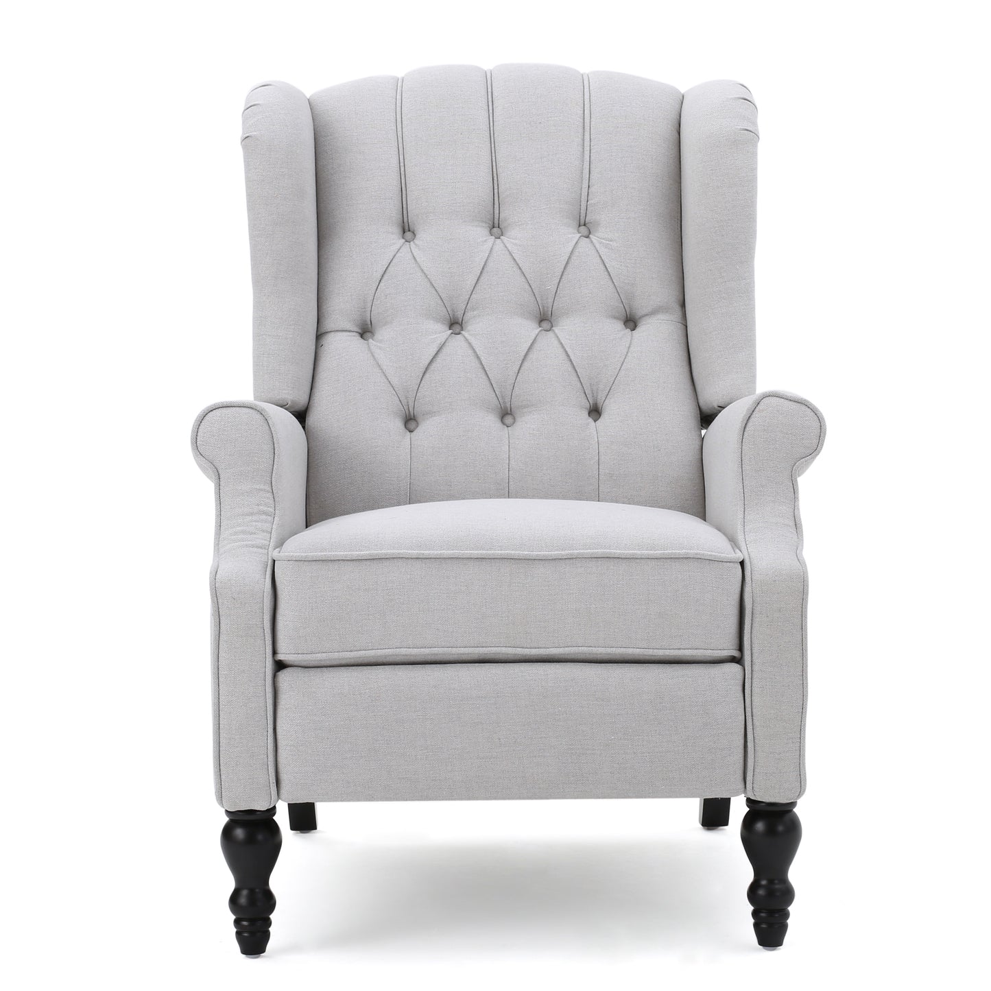 Perfect for entertaining or relaxing, our armchair uses a smooth pushback reclining mechanism and carefully crafted accents to tie your home together with absolute sophistication. This pushback recliner features gorgeous details such as button tufting, diamond stitching, and tonal piping to bring your decor to the next level. Finished with a lovely wingback design and rolled recessed arms, our recliner is as stylish as it is functional.