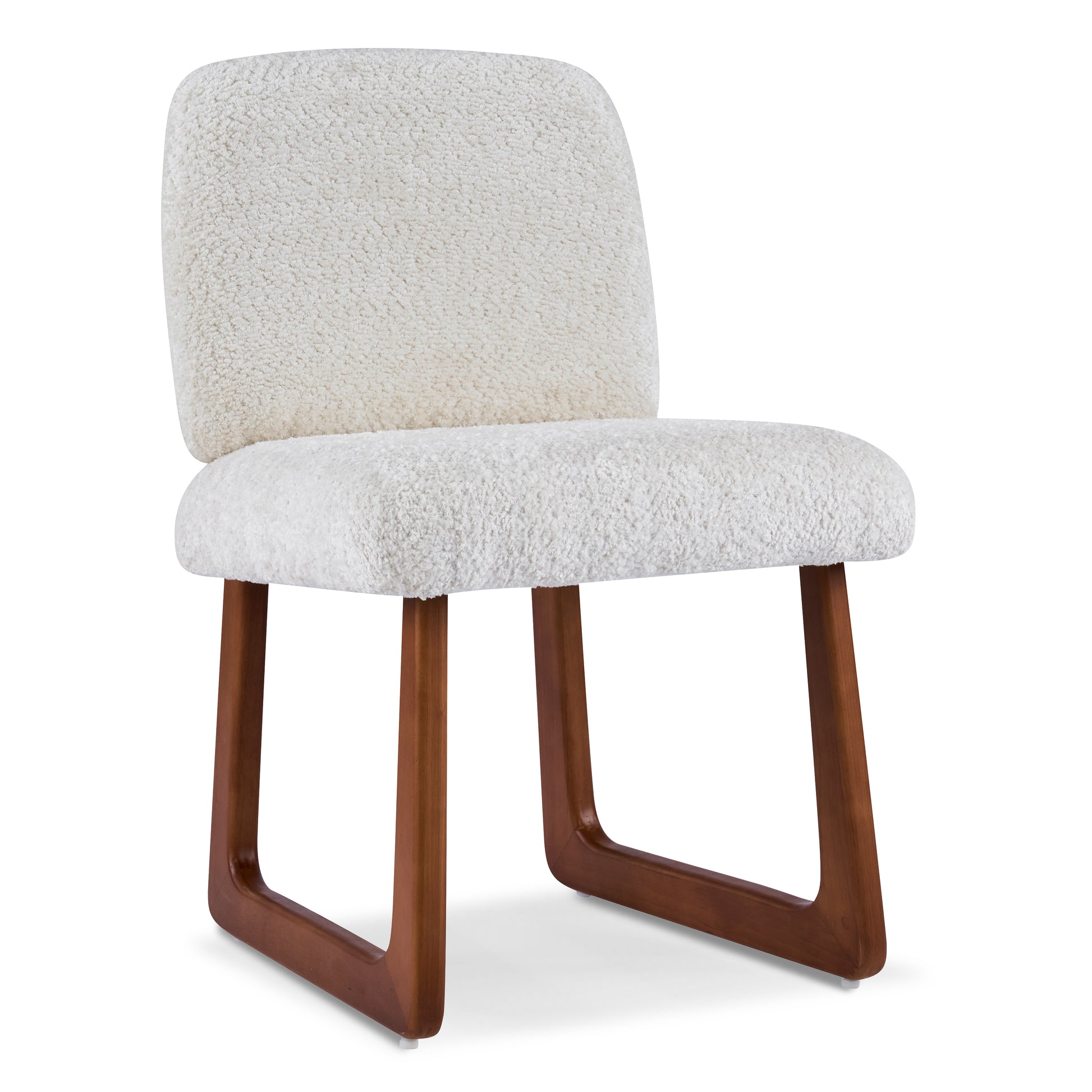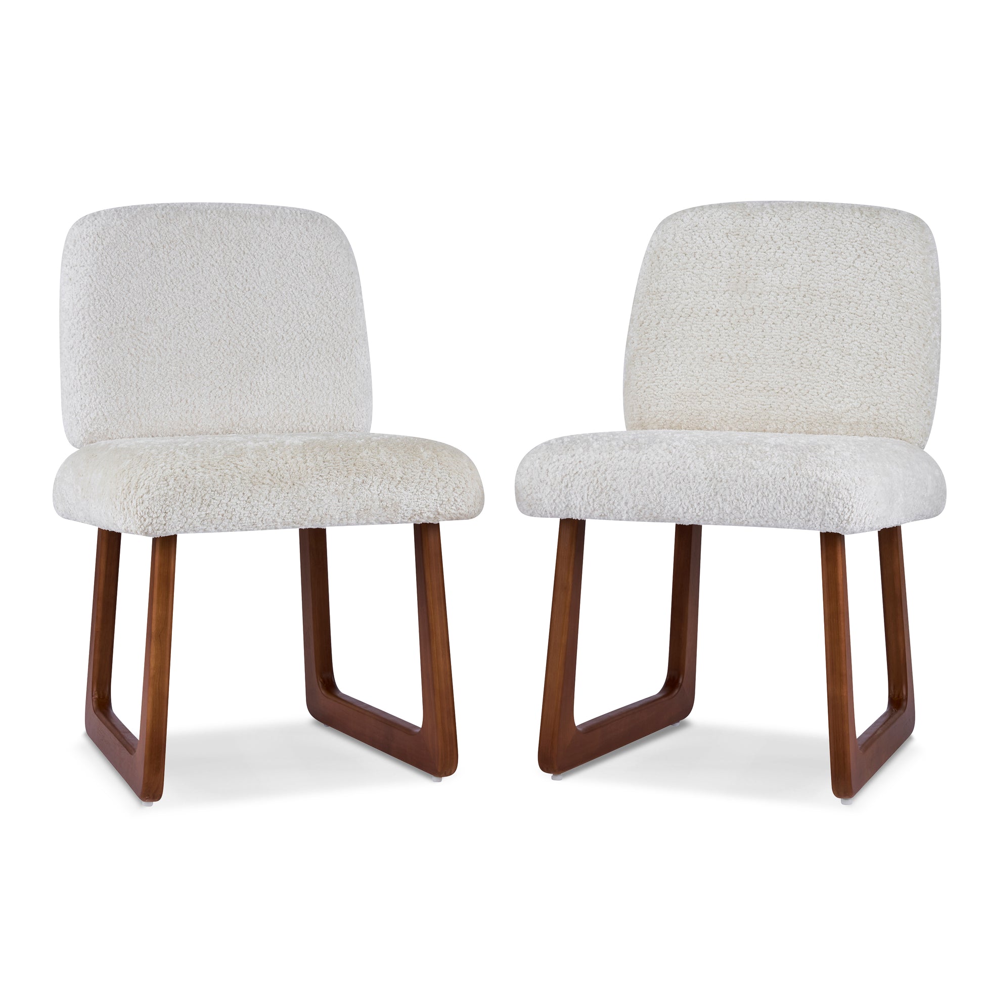 Elowen Dining Chair Set of 2, Plush Boucle Fabric Upholstered Chairs with Curved Wooden Legs, Beige & Brown, 300lbs Capacity