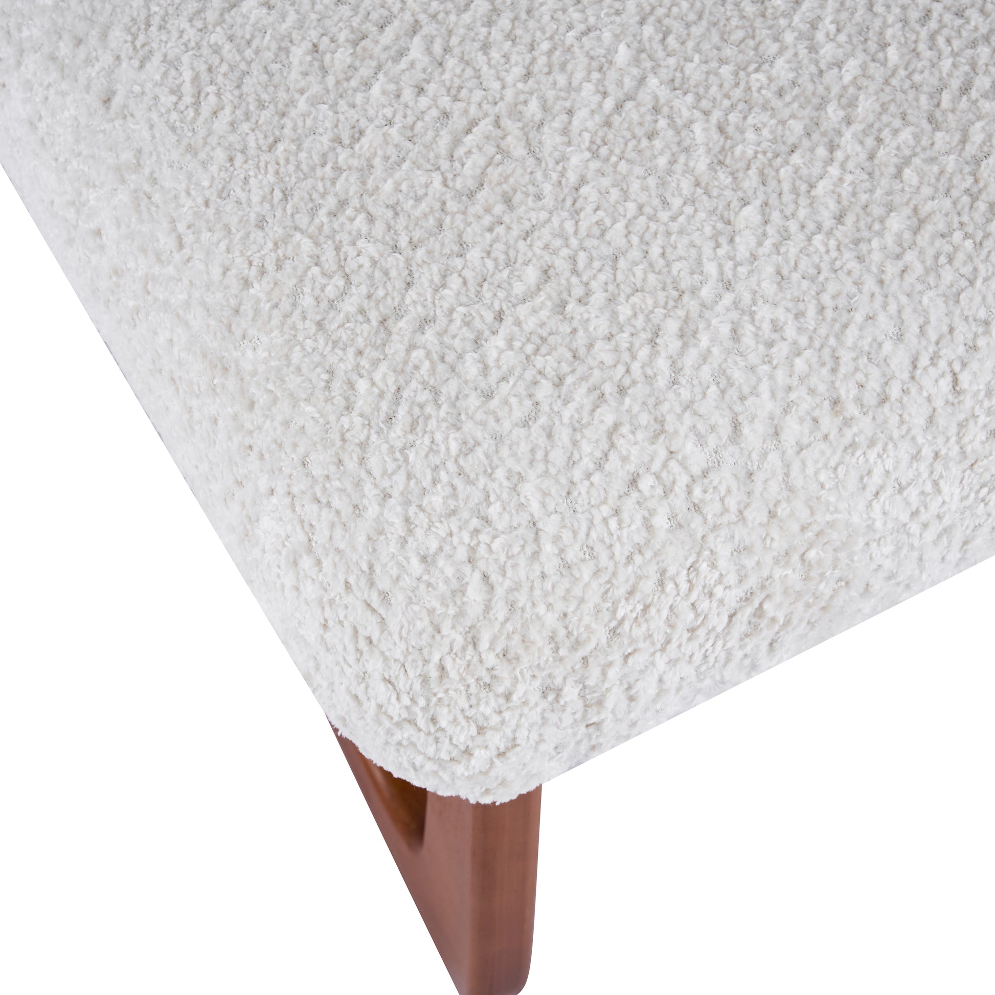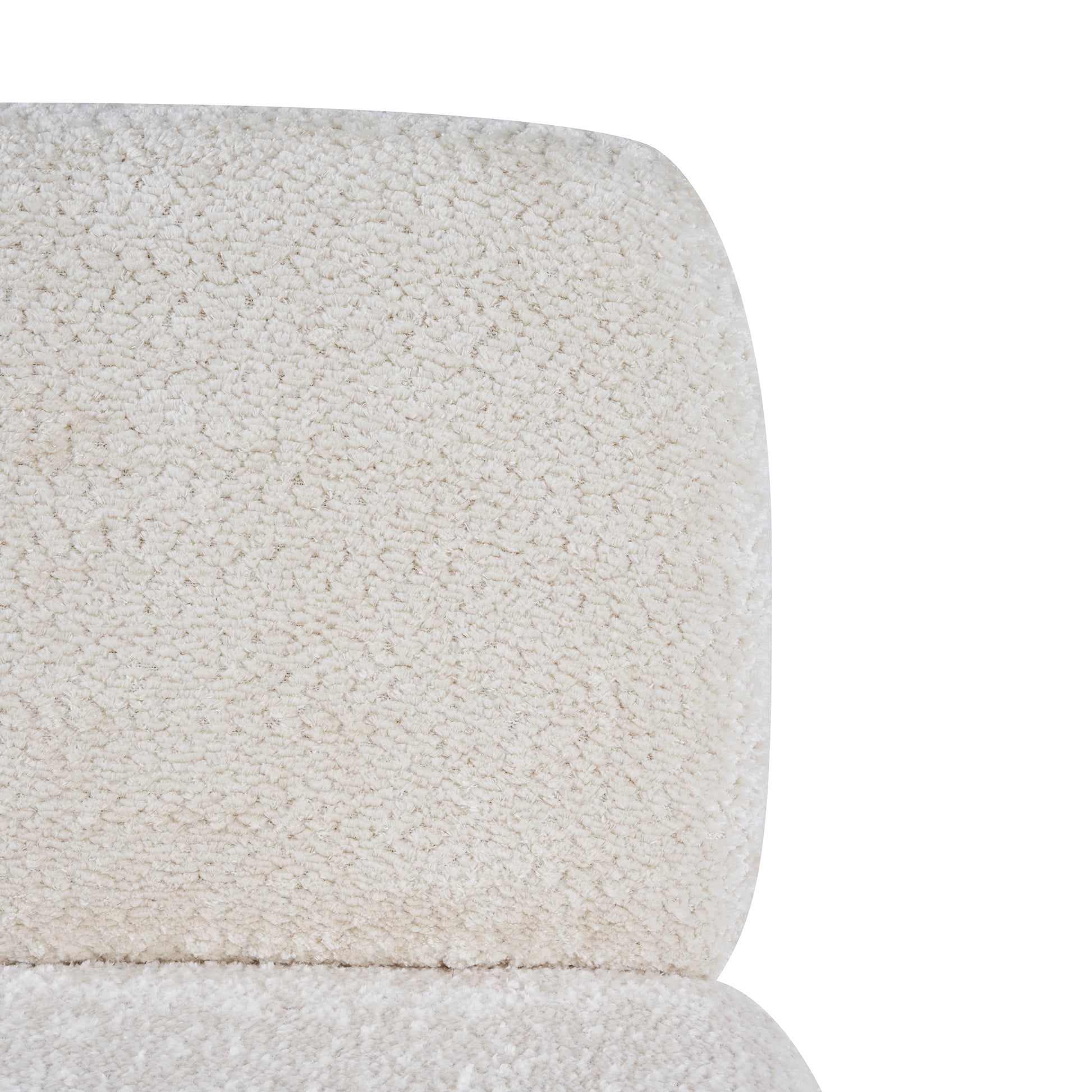 - Plush Boucle Fabric Upholstery: Luxuriously soft and textured boucle in warm beige offers cozy, inviting comfort with a trendy, sophisticated touch that enhances any dining setting.