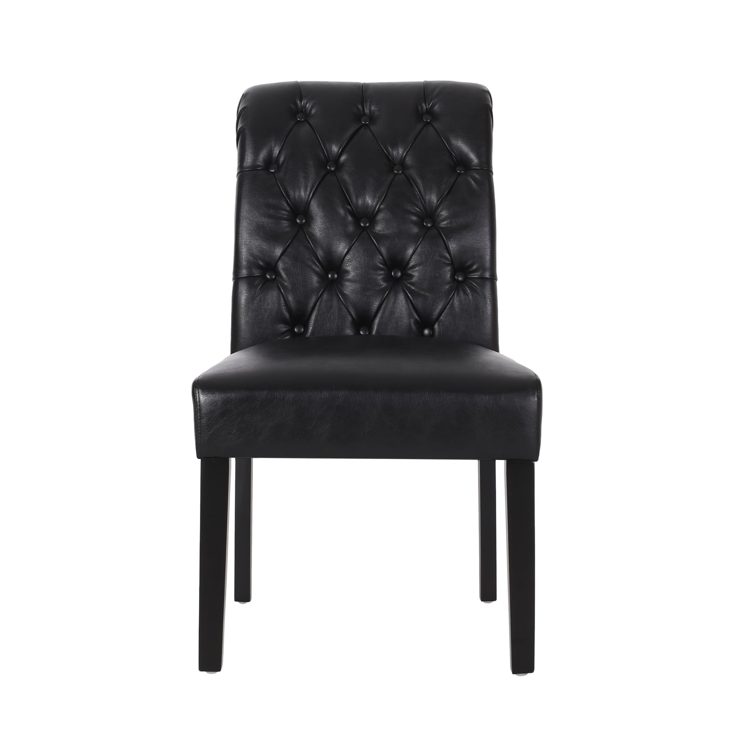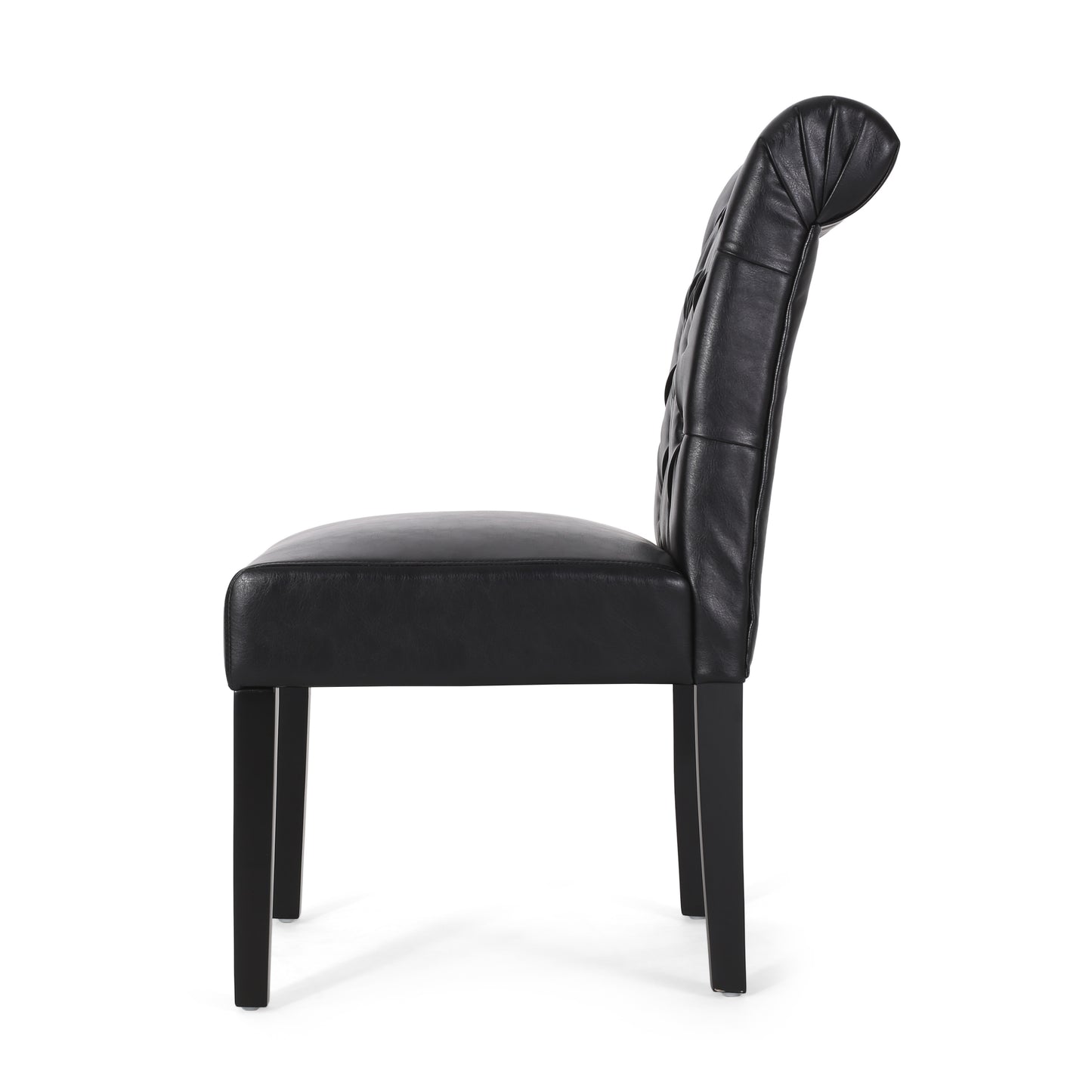 Upgrade your living room or dining room space with a splendid set of chairs that will instantly transform your decor. With an elegantly rolled top, these dining chairs will be a beautiful contemporary addition that will add luxury to your interior space. Featuring clean, straight lines contrasted by gentle curves, these chairs offer plush upholstery with button tufting and diamond stitch accents for immaculate texture and design. Finished w...