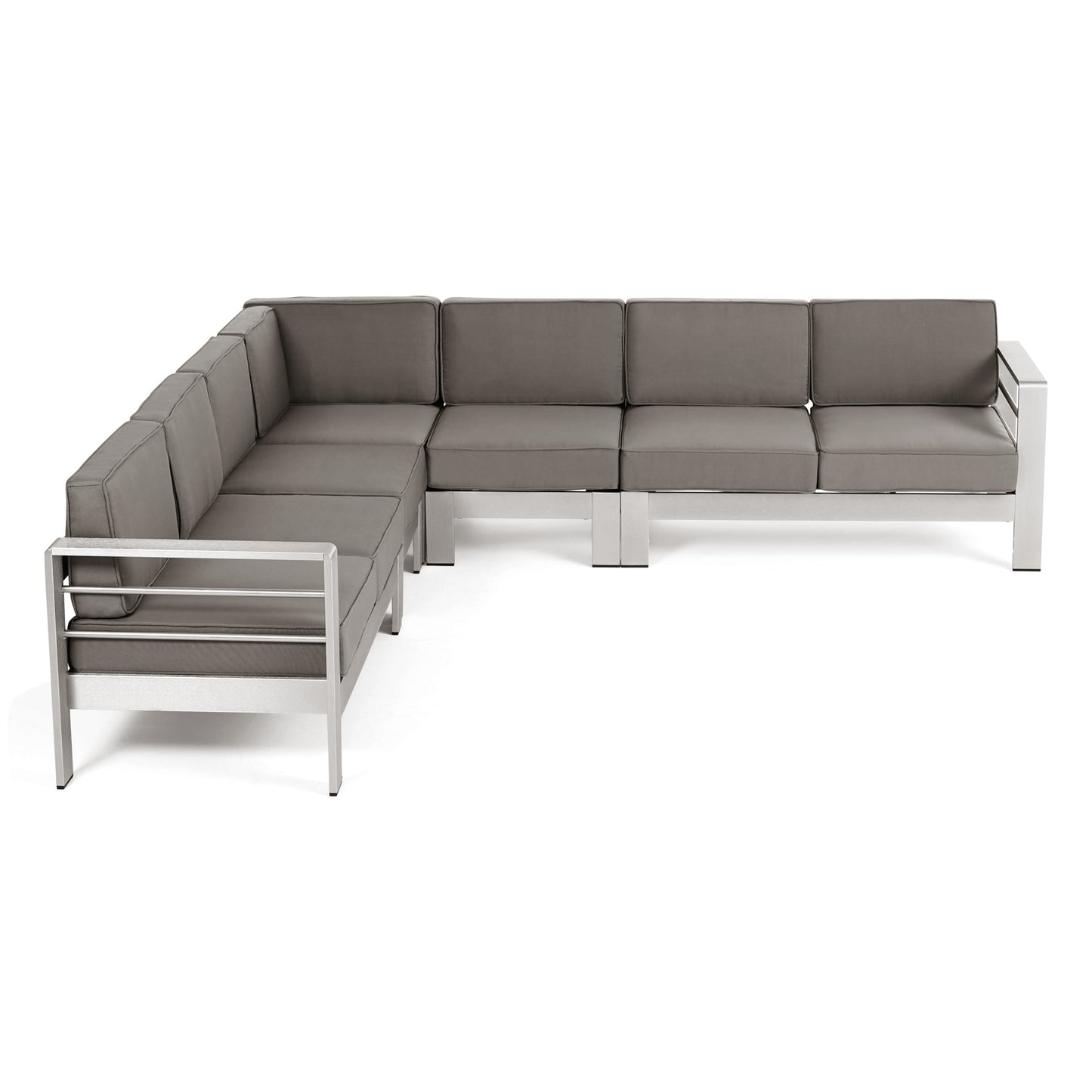 Emily Coral Outdoor 7-Seater Aluminum Sectional Sofa Set, Silver and Khaki