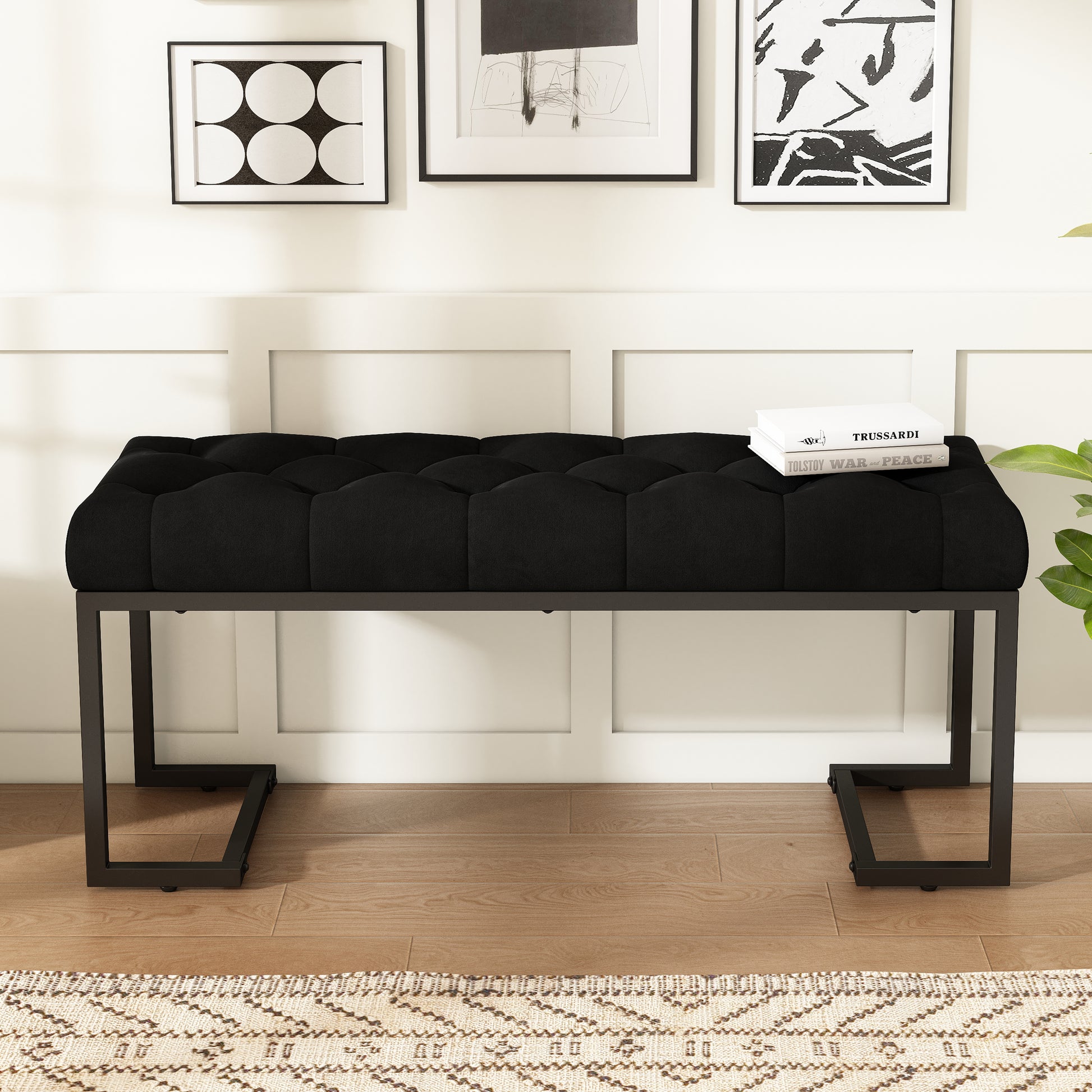 You can easily add a finishing touch to your foyer or bedroom with a charming upholstered ottoman bench that is sure to bring your interior space together in a flash. Our delightful bench brings a brilliant modern atmosphere to any space with its plush, button-tufted, diamond stitched top and smooth metal legs. Ideal for adding extra seating to any room, this elegant statement piece not only offers excellent style but also provides outstand...