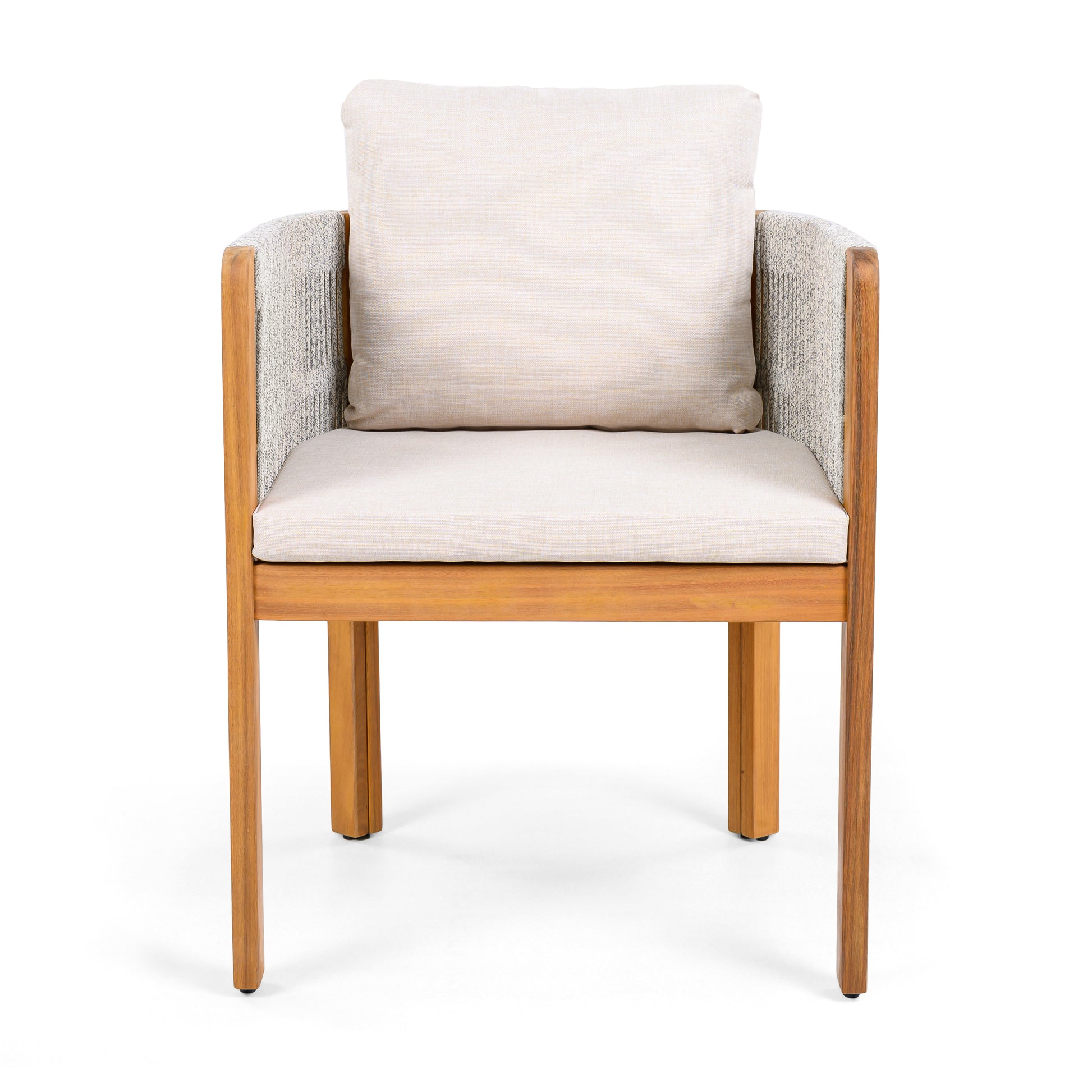 Godric Acacia Wood Outdoor Dining Chairs 2-Pack with Mix White Rope Handles, Washable Waterproof Beige Cushions, 400 lbs Capacity