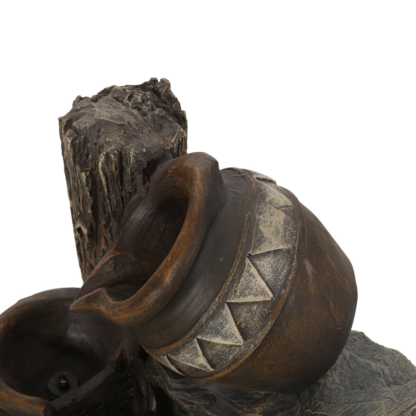 Bring home cascades of water and vintage style that will turn your outdoor space into an oasis. Our garden fountain features a calm waterfall flow that continuously circulates using an included pump, bringing a playful aura to any backyard or patio. Crafted with an incredibly durable polyresin material, this decorative accessory offers a weather-resistant structure that allows outstanding attention to detail. Finished with a stacked jar des...