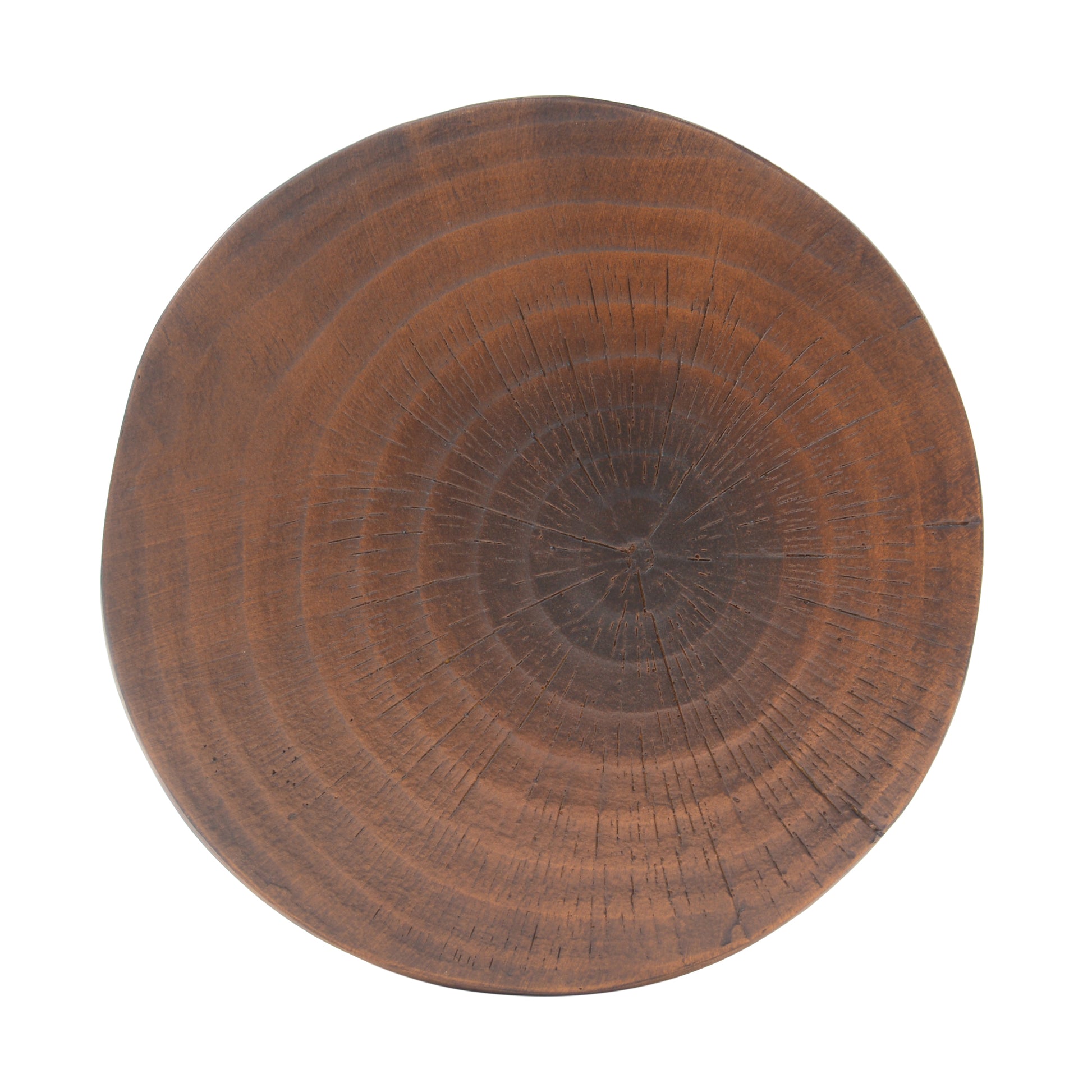 UNIQUE DESIGN: This side table is a hollow round table-shape with a wide base making the table very stable. The surface has been treated to imitate a wood grain. These characterizing features make it both artistic and natural. The texture of the surface on each side table is distinct, which makes them each unique.