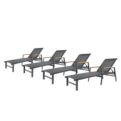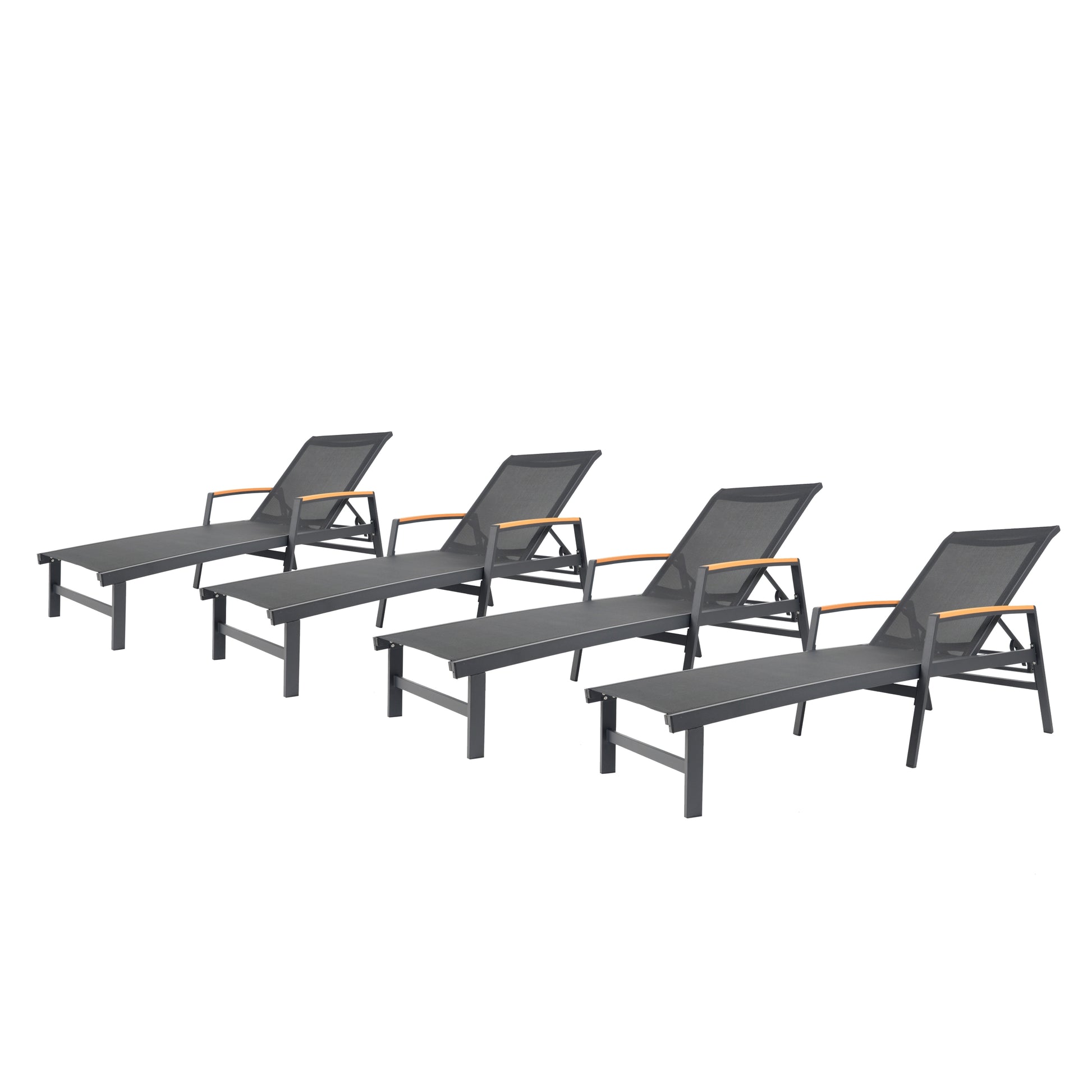 Joy Outdoor Aluminum Chaise Lounge with Mesh Seating (Set of 4)
