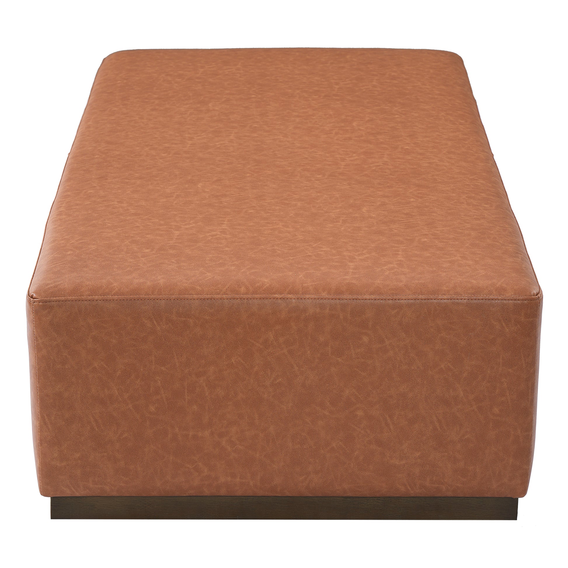 Kenelm Brown Faux Leather Ottoman – Rich Soft PU Upholstery with Sturdy Wood Frame for Warm Modern Primary Living Elegance