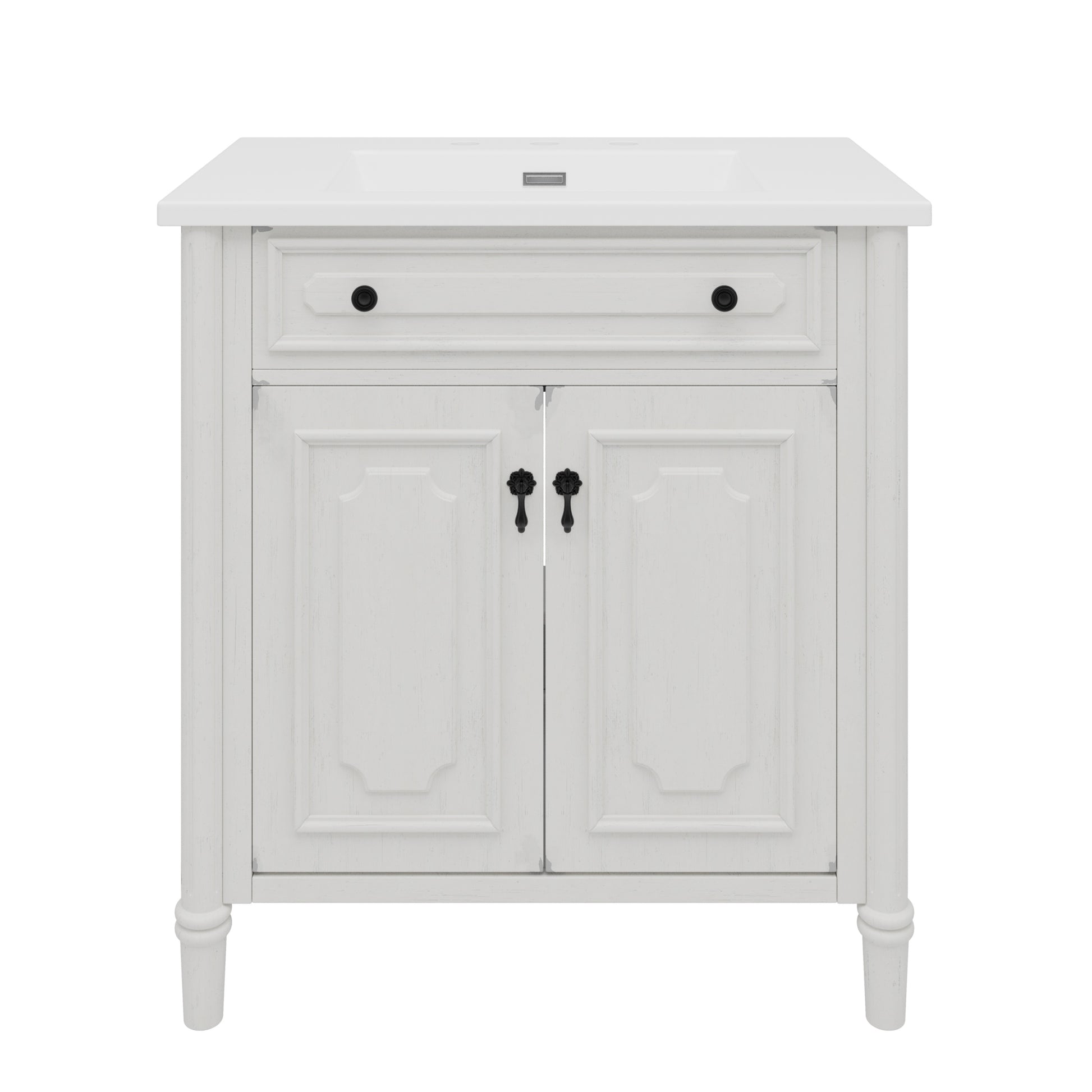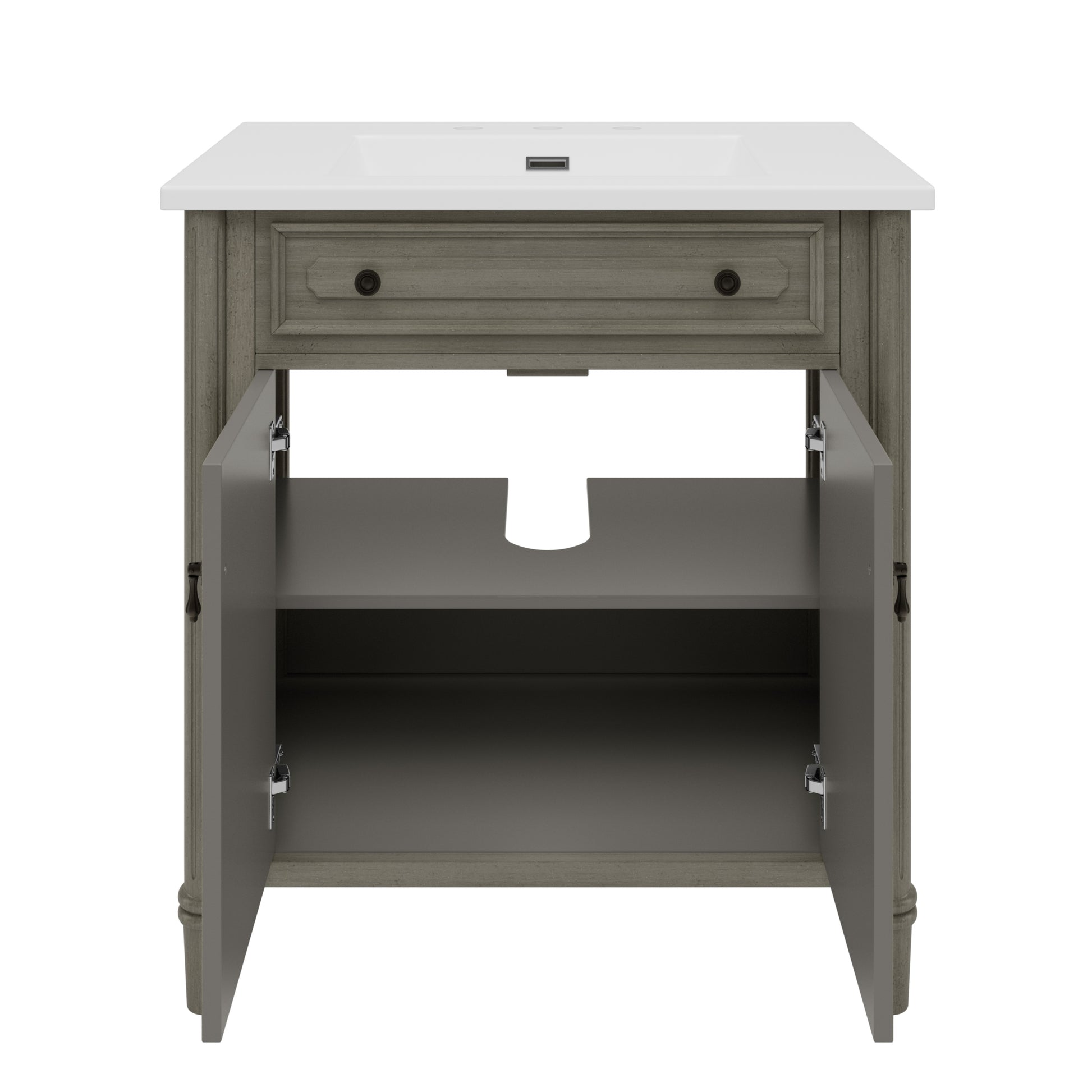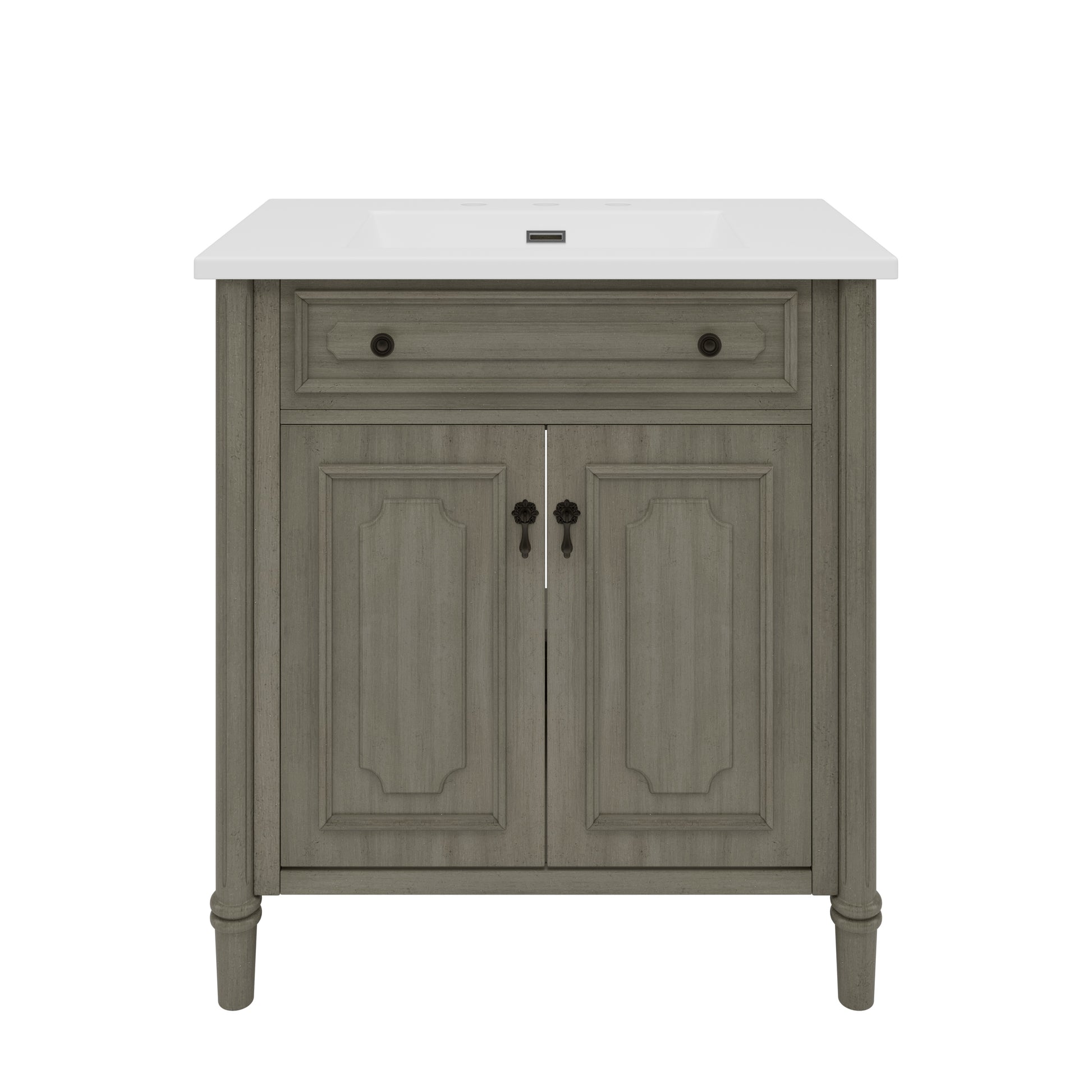 Elegant Vintage Design with a Timeless Appeal: Bring a touch of classic charm to your bathroom with this 31-inch vintage bathroom vanity, featuring an antique gray finish that exudes sophistication and character. The beautifully crafted panel-style doors with antique pulls add a touch of retro elegance, making this vanity a perfect fit for traditional, farmhouse, or eclectic bathroom styles.