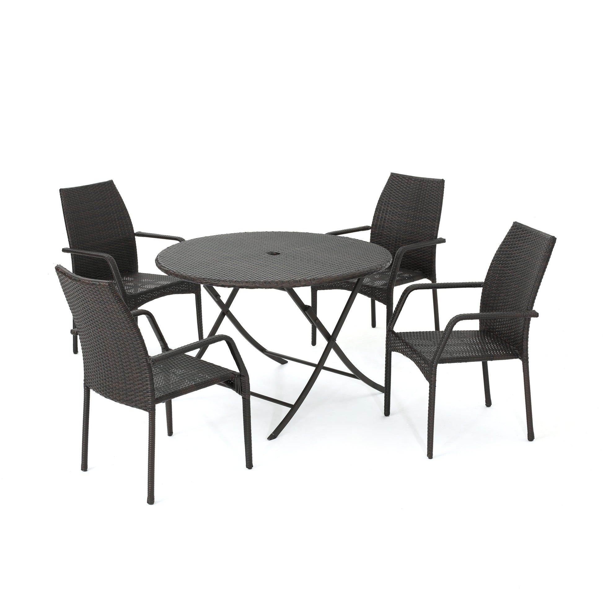 Knightley Outdoor 5 Piece Multi-brown Wicker Dining Set