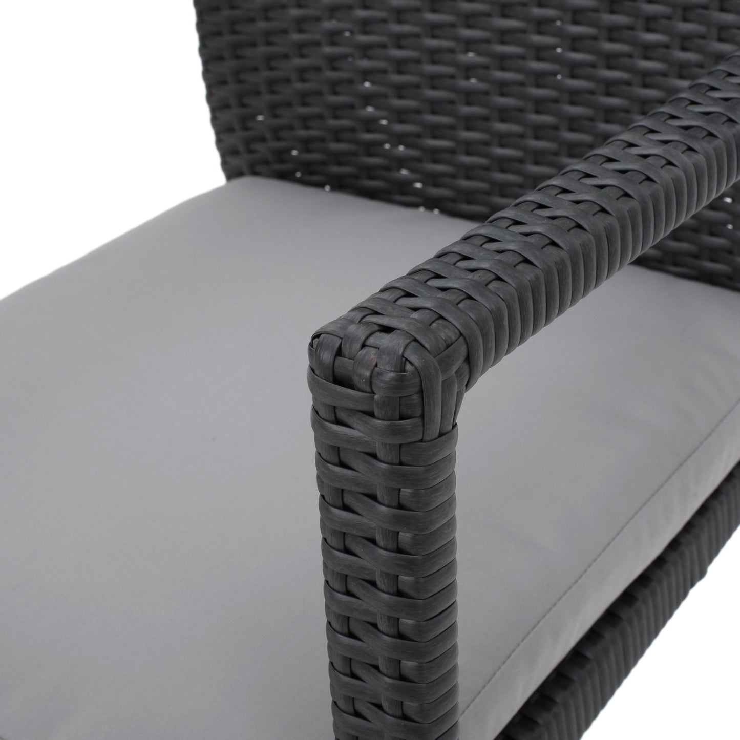 The beautiful blend of wood and wicker comes to life with this bistro set. Complete with two wicker dining chairs and one wooden table, you can enjoy eating in your backyard whenever you want. The wooden table is treated to withstand even the harshest of seasons, ensuring your set looks great all year long. This set also comes with the added benefit of cushions for your seats, giving you the perfect color contrast, as well as the comfort th...