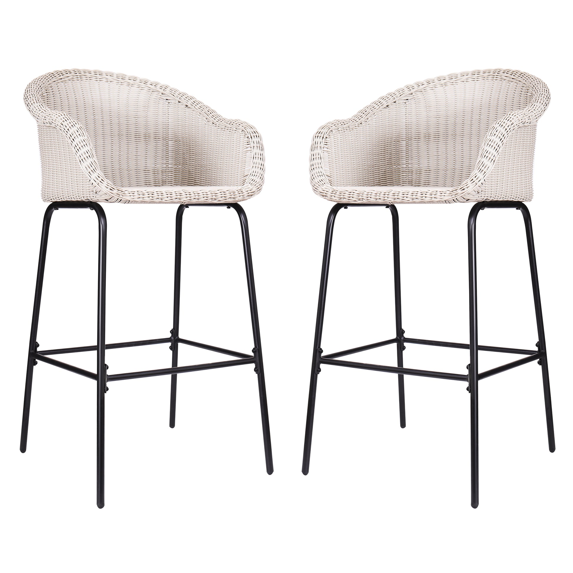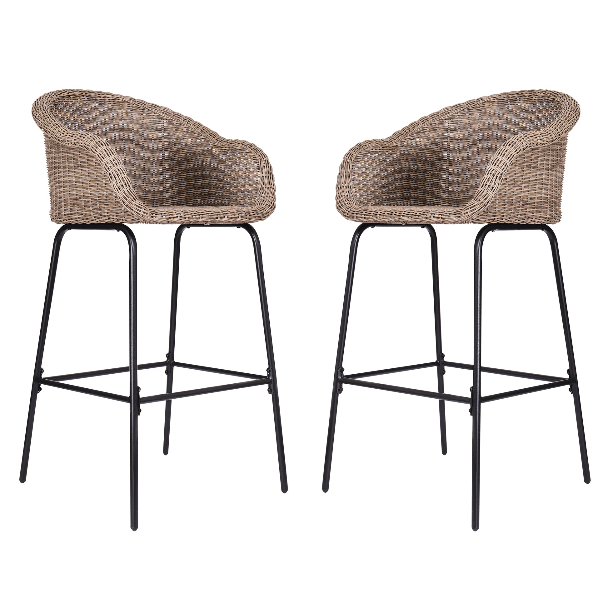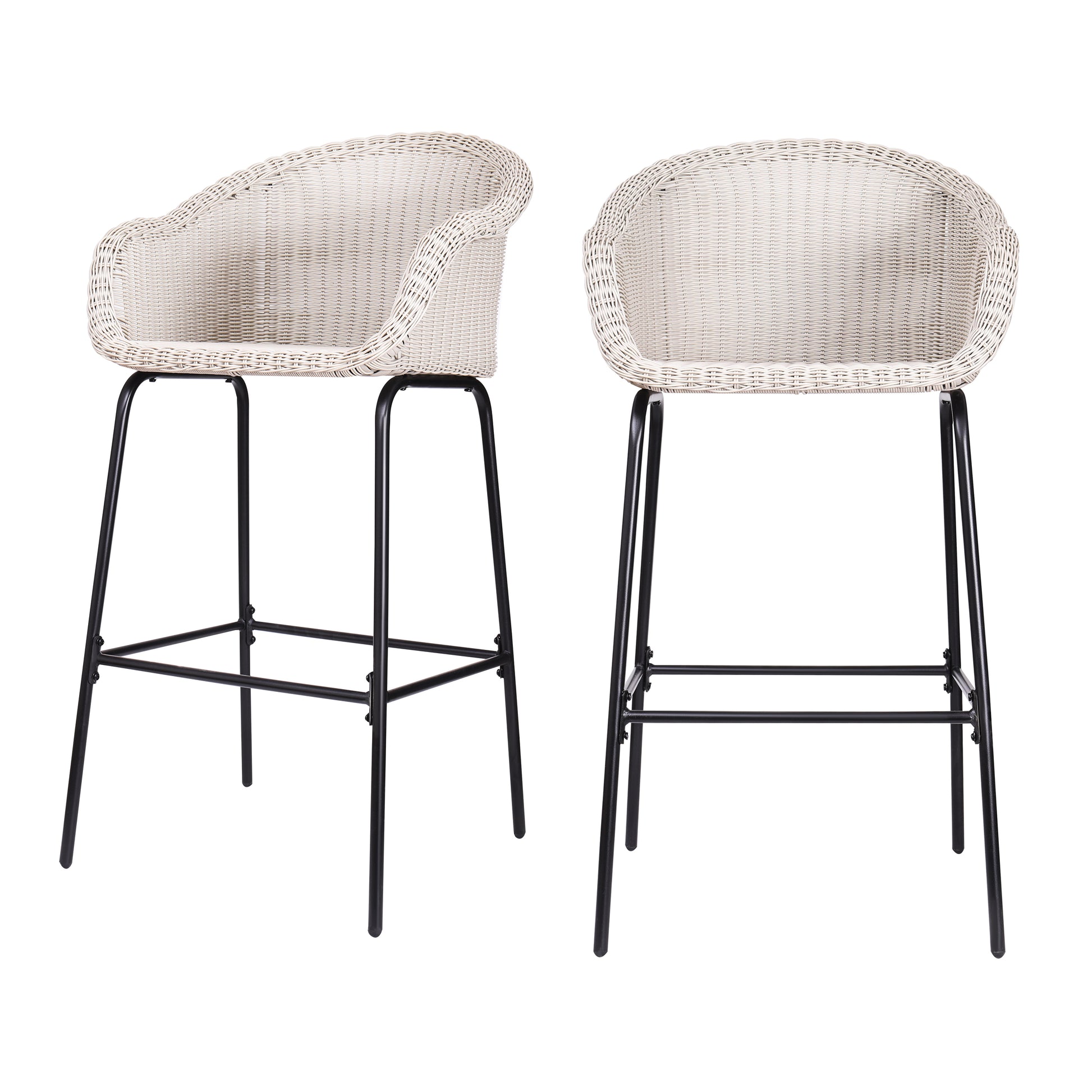 Laddiar Outdoor Metal Wicker Barstool, Faux Wicker, Set of 2