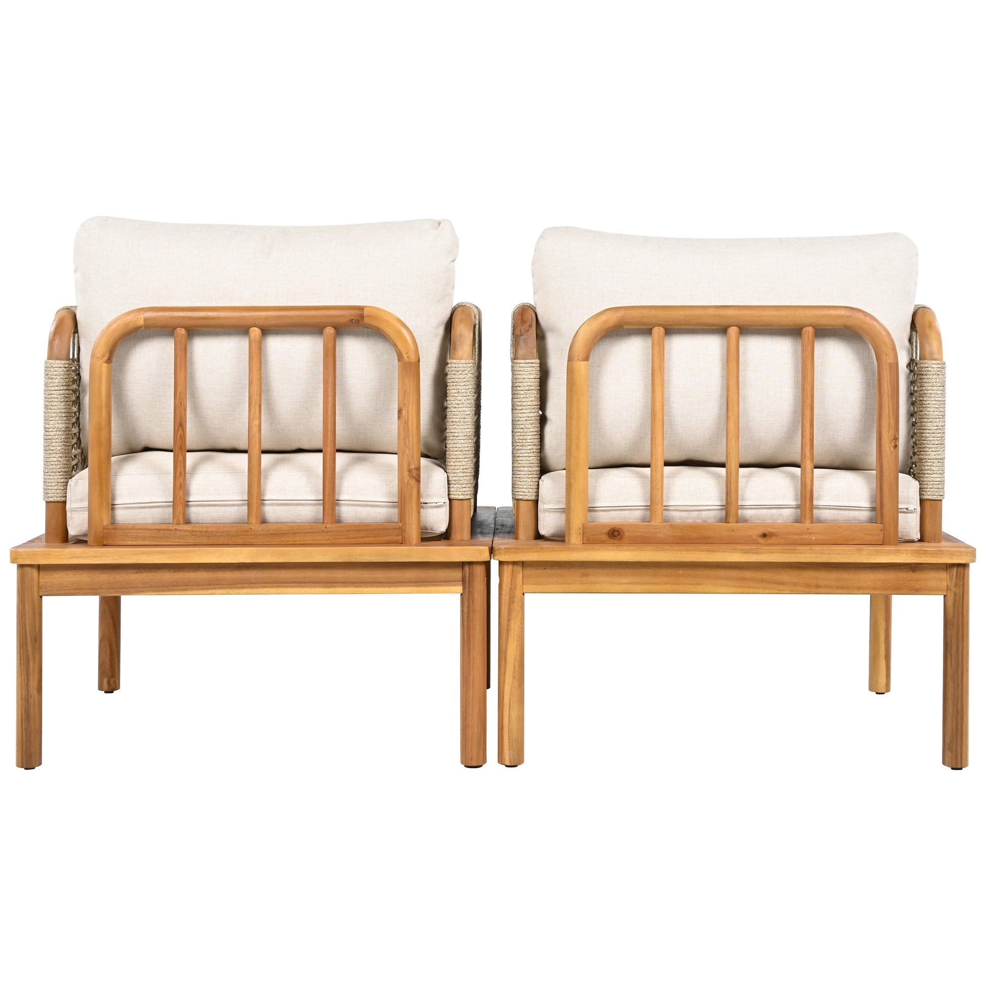 Linnea Outdoor Acacia Wood and Rope Club Chair with Cushions,Set of 2