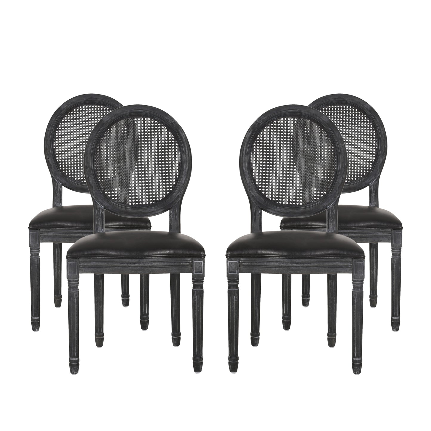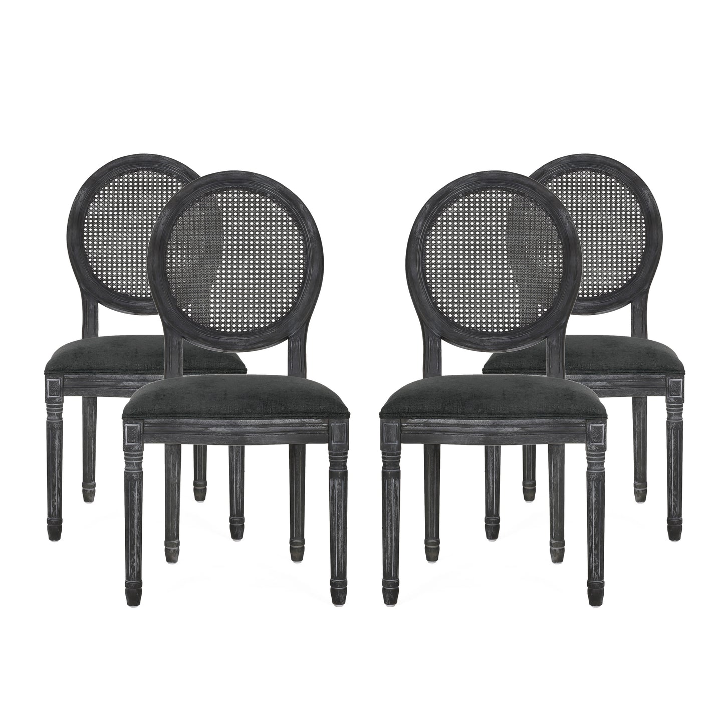 Lintz French Country Wood and Cane Upholstered Dining Chair, Set of 4
