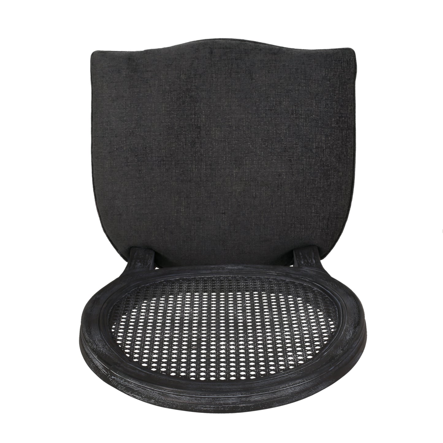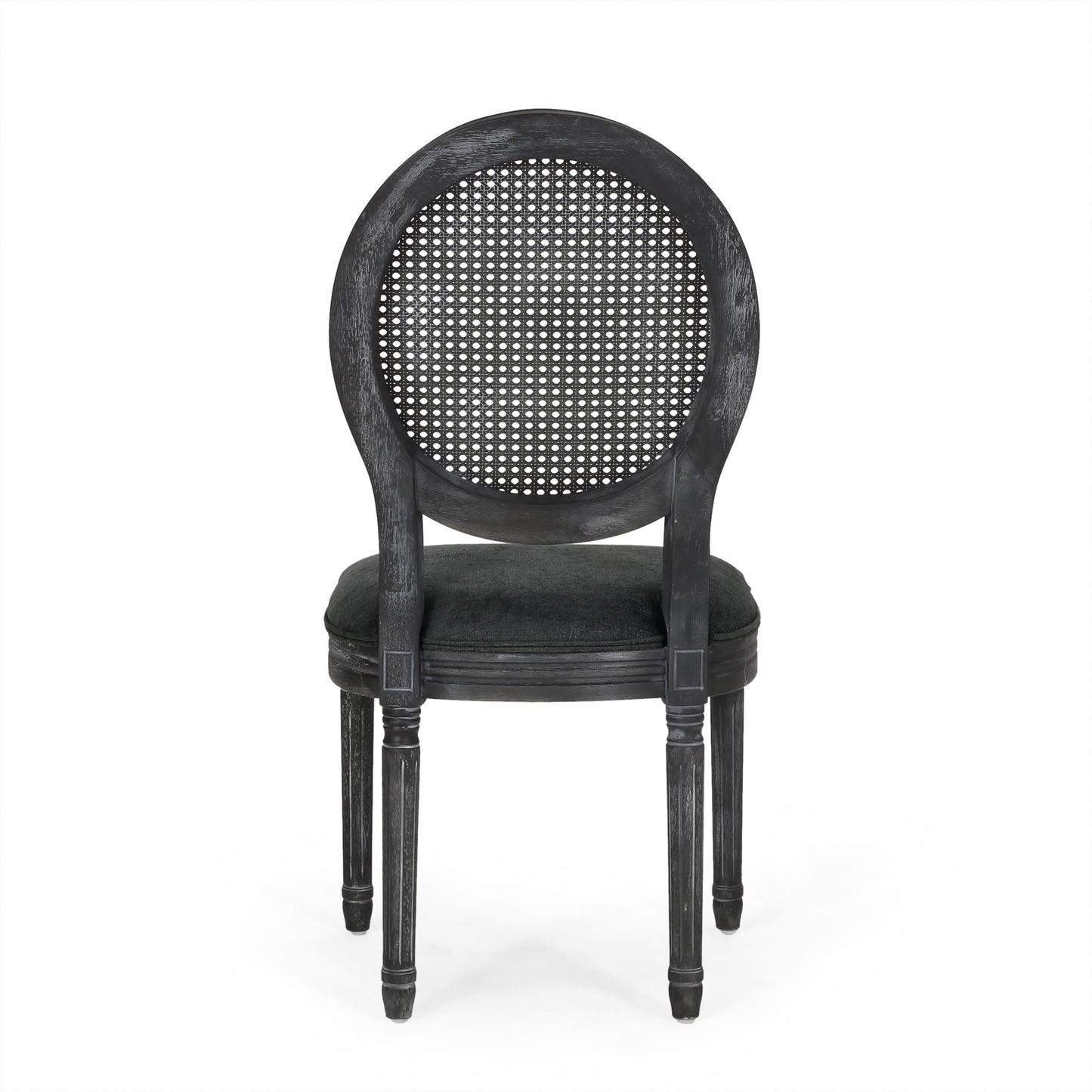 Offer your dining space the perfect perch with seating that will set the tone of your decor. Drawing from French country inspiration, our set of upholstered dining chairs features an iconic round backrest made with cane, smooth upholstered seating, and fluted legs, offering your home something a little out of the ordinary while also remaining true to their elegant, old-fashioned roots. Their weathered frames showcase wonderfully contrasting...