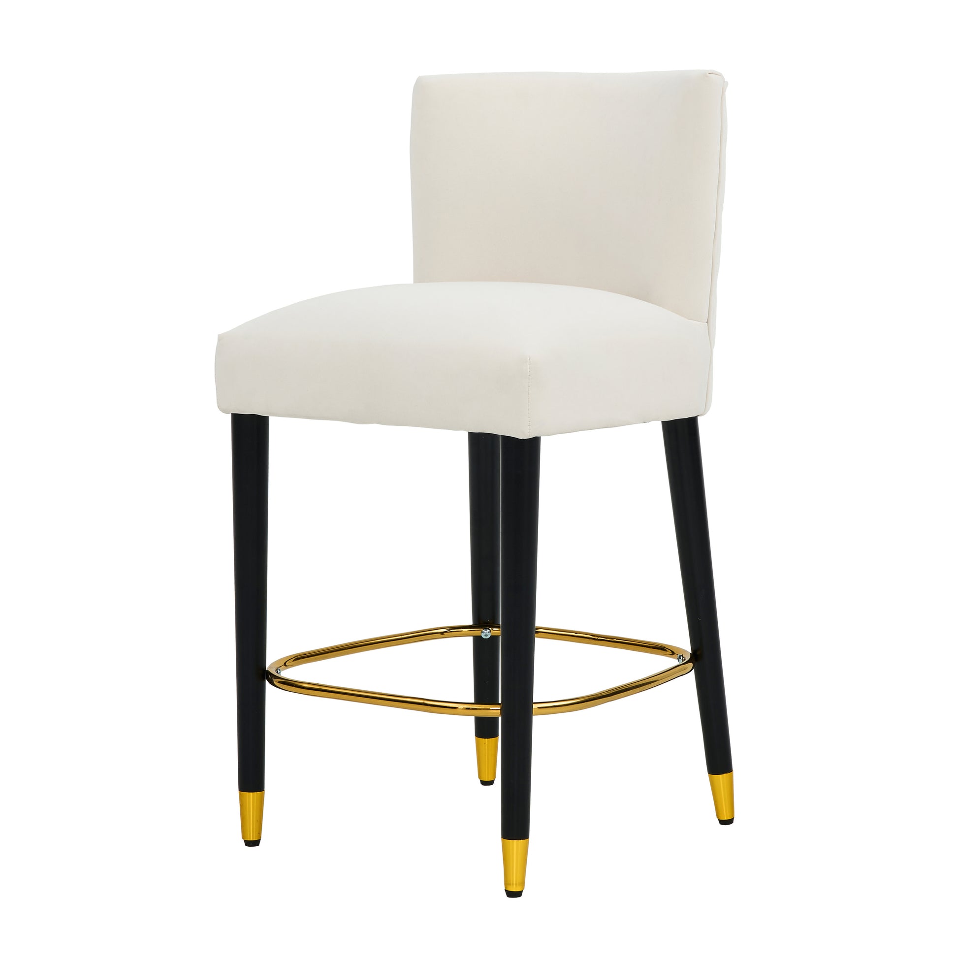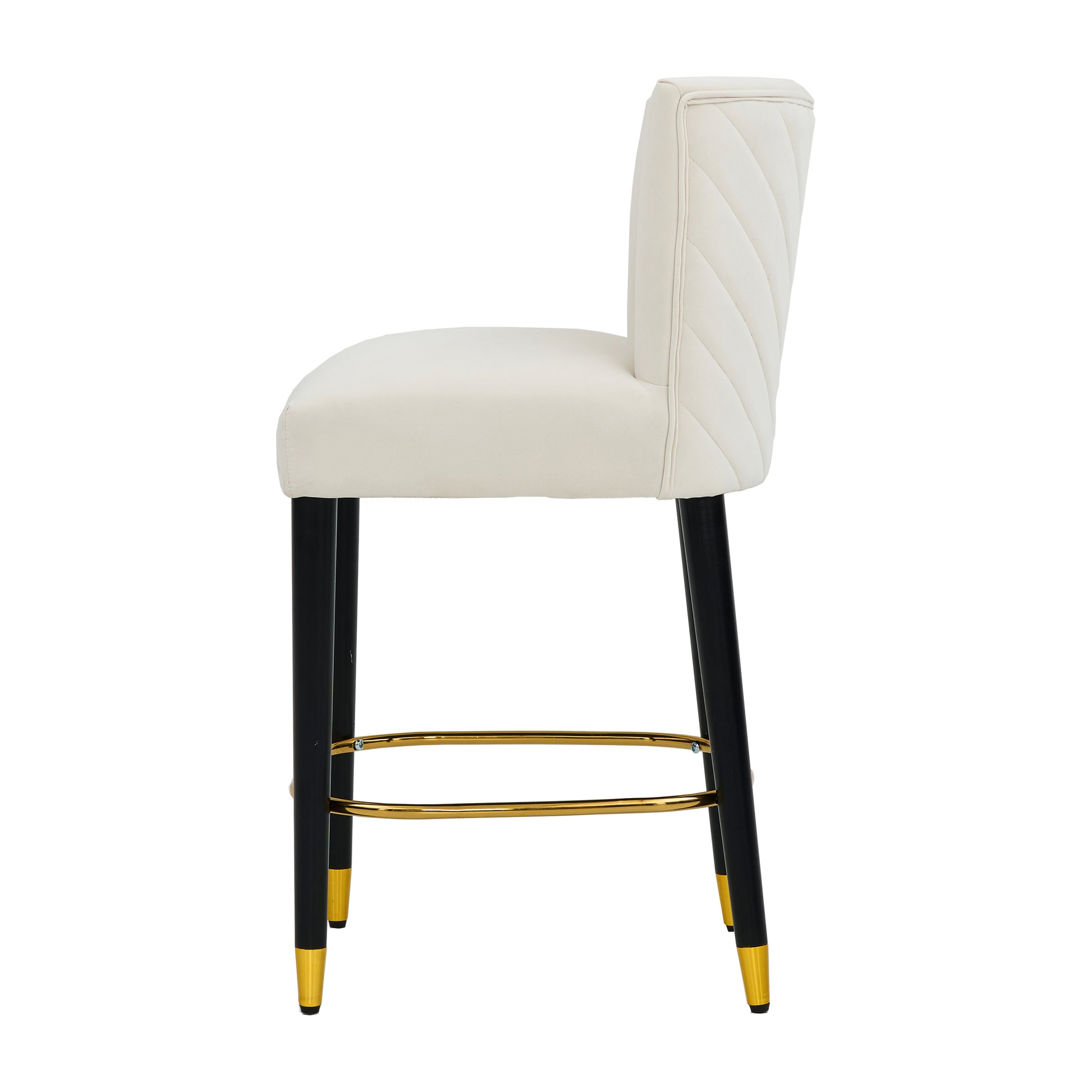 Elegant Design: The bar stools feature a sleek and modern design with a tufted backrest and a combination of black legs and gold footrests, adding a touch of luxury to any space.