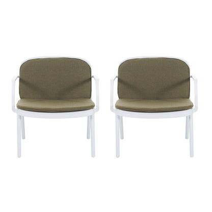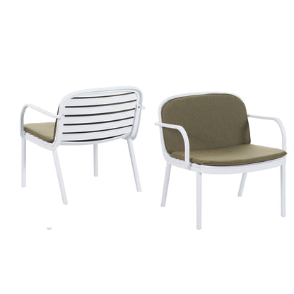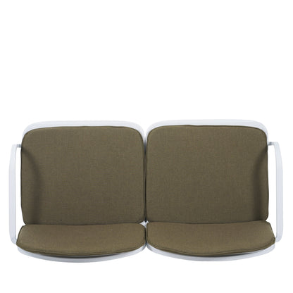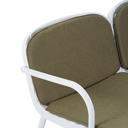 Luna 3 Piece Outdoor Chat Set,PP Club Chair and Loveseat, White Frame with Green Cushion