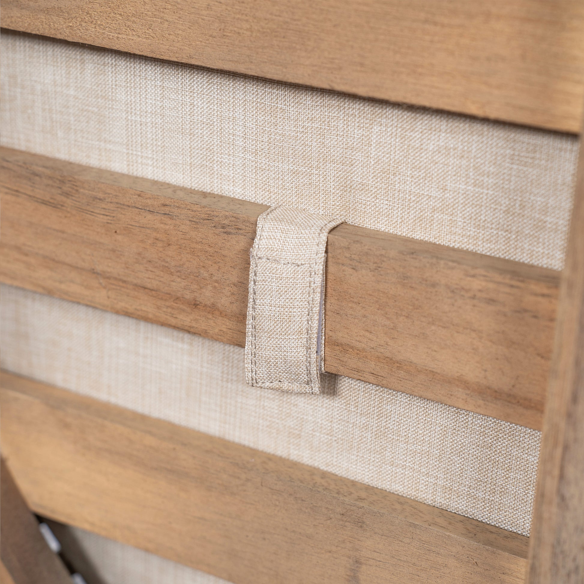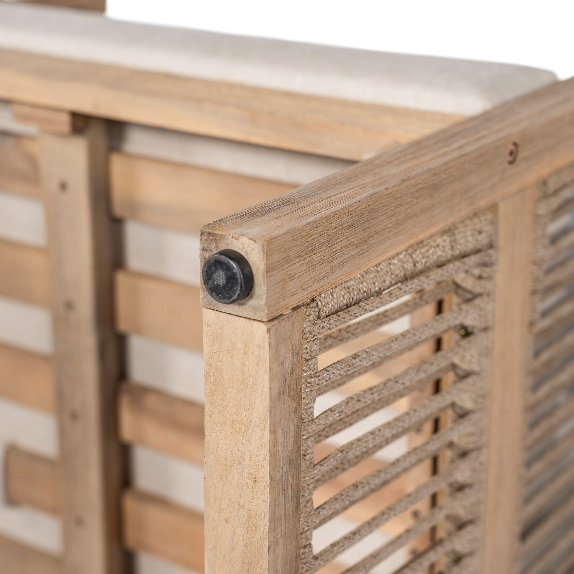 Flaunting a natural frame complemented by beige cushions, the chair embody quiet sophistication. Crafted from acacia wood, the chairs' frame showcases the intricate grain and warm color of this distinctive wood, creating a rustic charm that enhances any outdoor space.