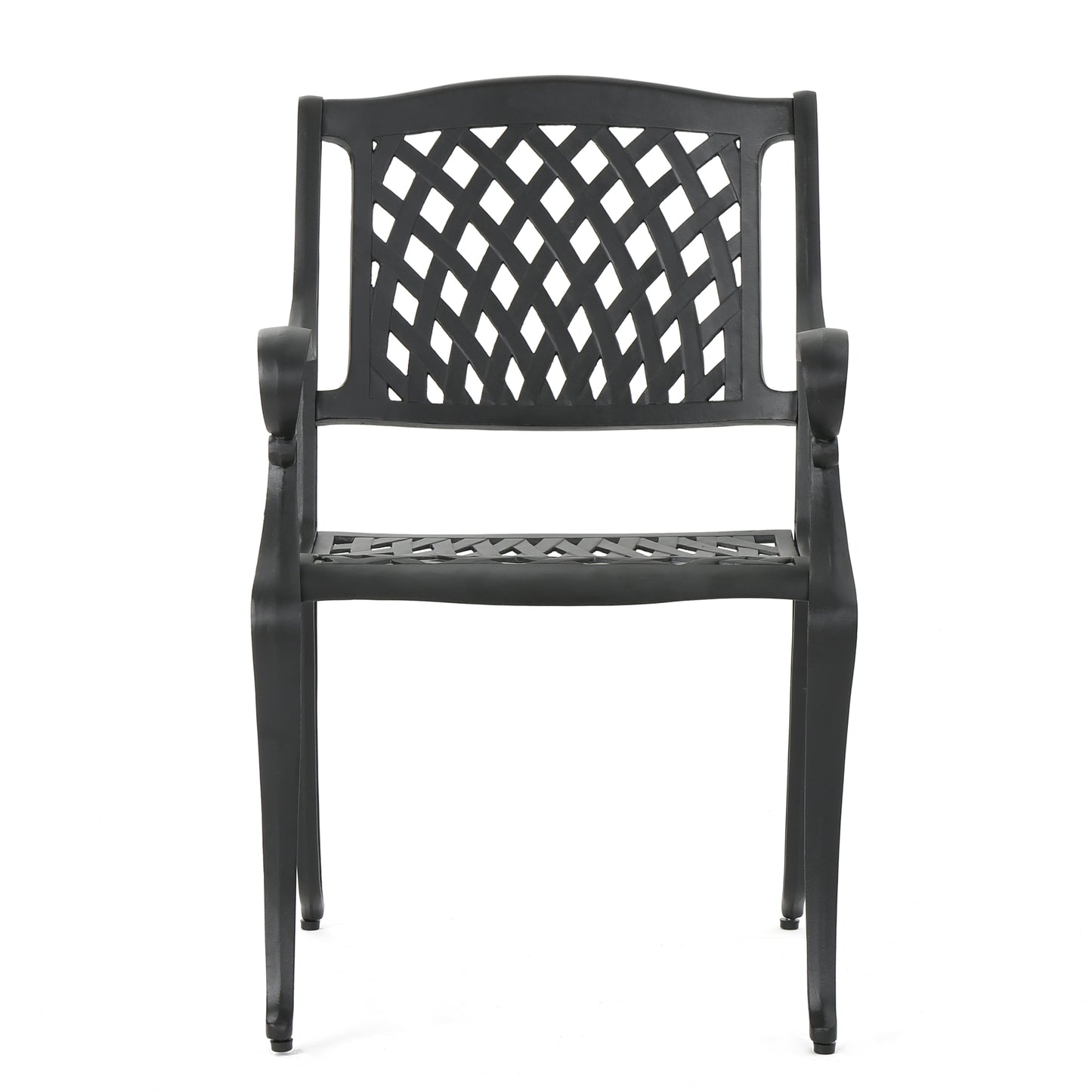 Marietta Traditional Outdoor 5-Piece Black Sand Cast Aluminum Dining Set