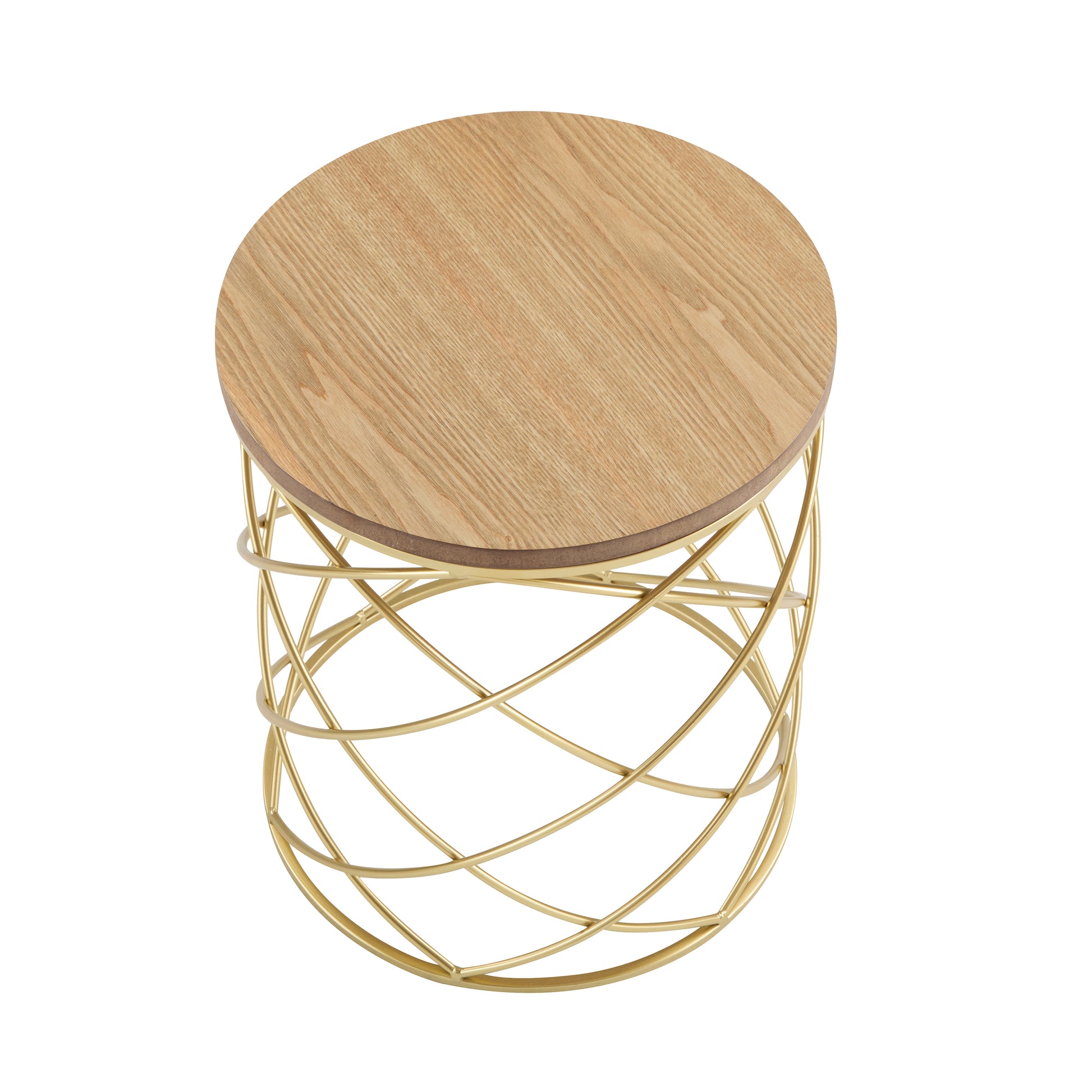 MODERN DESIGN: This side table is the perfect blend of wood top and metal frame. The base frame is an interlocking mesh that brings a unique charm to the whole product.